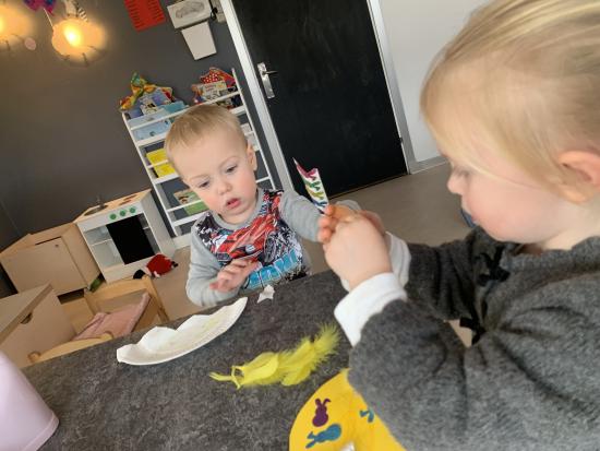 I dag var planen at vi ville male videre på vores malerier, hvor vi tager udgangspunkt i Joan Blond, men børnene var meget interesseret i at stille spørgsmål omkring kolonien (derfor er der billede af Ebbeløkke) så det gav vi os god tid til og børnene lærte også at vente på tur og række hånden op, når de ville spørge ind til kolonien. Bagefter gjorde vi klar så vi kunne male imorgen i stedet for! Og så gik vi alle ud på det grønne hvor vi legede “Hvad er klokken Hr. løve”! Hvor var de gode til at lytte og holde sig inden for de regler legen har! Dette er en virkelig god og let leg som de kan tage med sig, når de starter i SFO til maj.