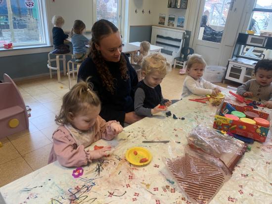 Ellers har vi leget på stuen, bygget tårne og huse med klodserne og lavet mad ved det lille bord.