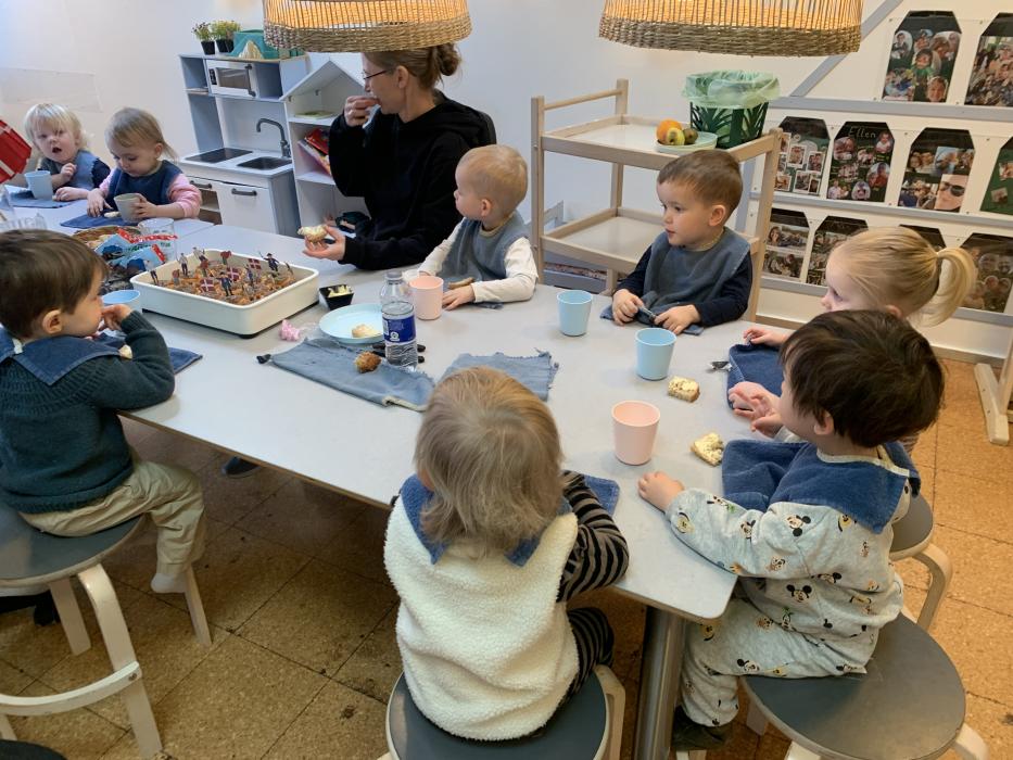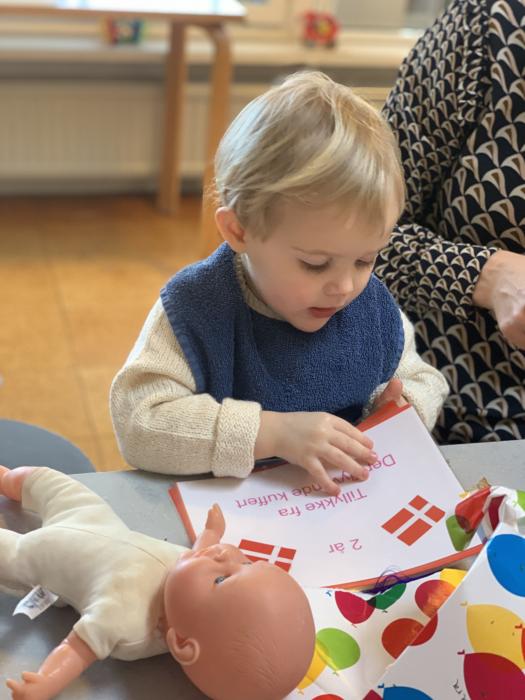I dag til formiddag holdte vi fødselsdag for Clara der blir 2 år i dag. Vi sang fødselsdagssang spiste kage, og råbte hurra. Bagefter læste vi i bøger, legede på stuen, lavede påskepynt og tegnede på kopier.