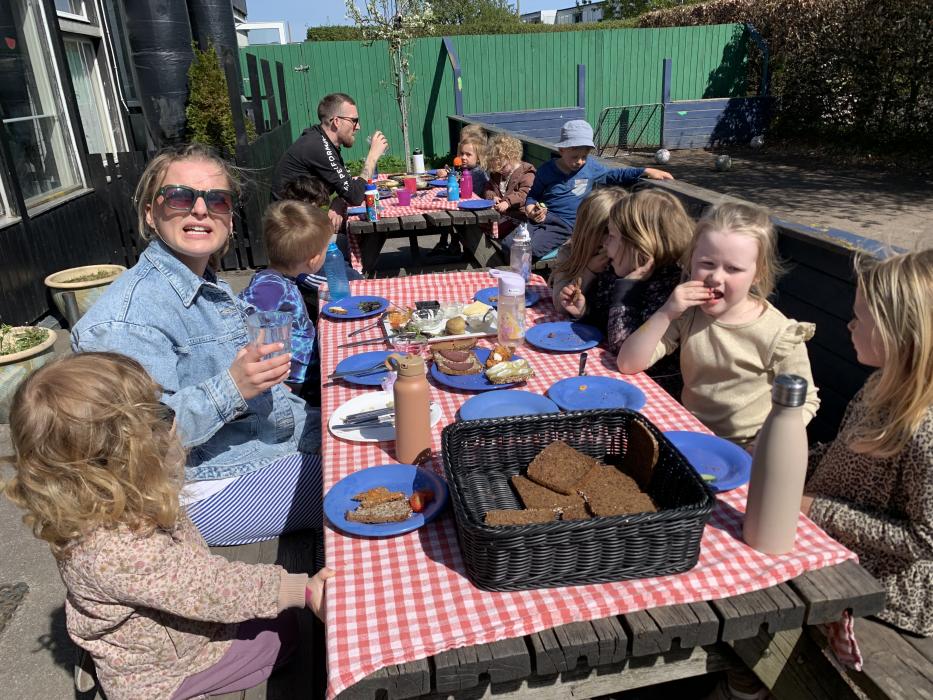 Idag har vi afsluttet emneugerne med at vi sang i fællesrummet og vi var så heldige at få besøg af den store Bamseven der kom og hilste på os og delte både kram og medaljer ud. Bagefter dansede vi løs med alle vennerne :)))