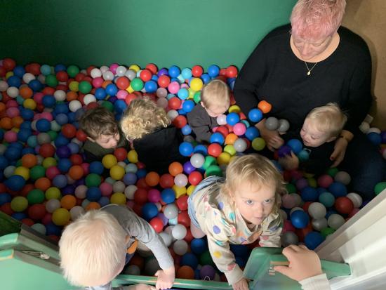 Idag har de største børn været samlet på Tepotten hvor Tina fortalte en historie om Bamseven. Imens masserede børnene hinanden på ryggen. Bagefter legede vi i puderne :)