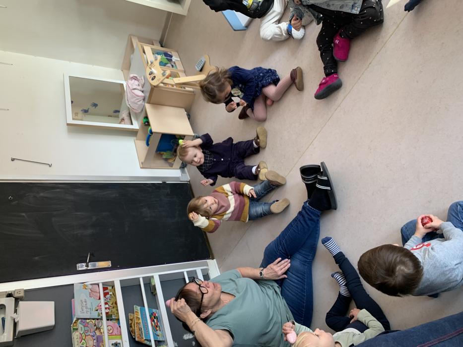 Så blev det tid til endnu en gang fællessang i fællesrummet for hele vuggestuen - og deres bamsevenner:) det er en kæmpe fest - og man kan fornemme at nogle af sangene allerede sidder fast i de store børns hoveder:) der er vedhæftet billeder af sangene vi synger - så kan i også øve dem derhjemme:)