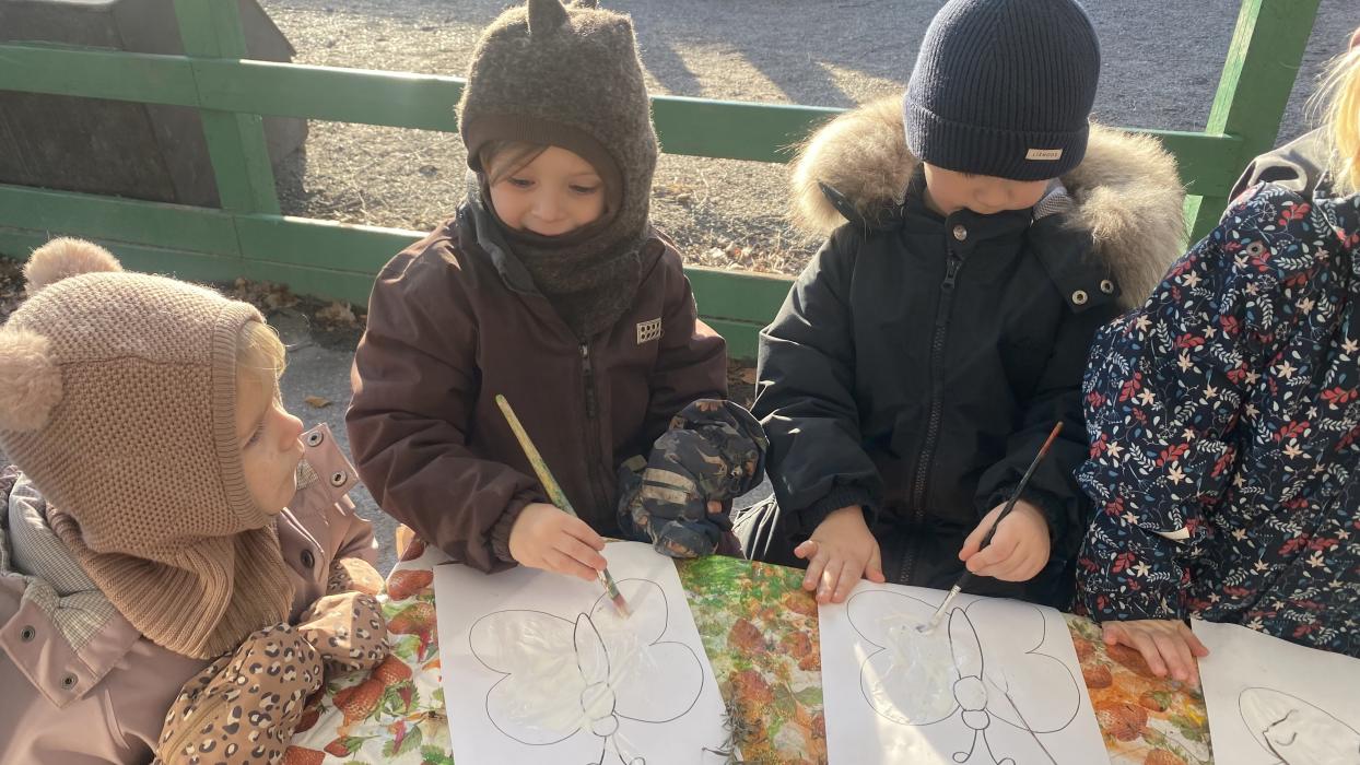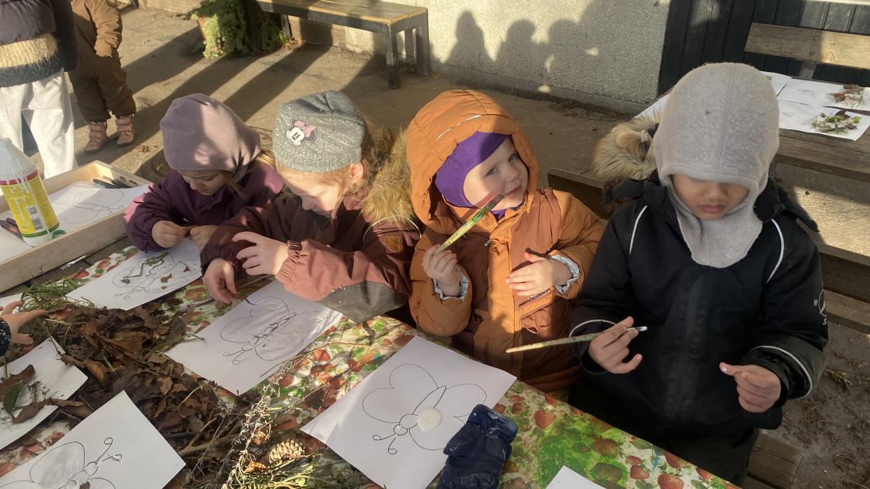 Vores sommerfuglelarver udvikler sig i stor hastighed. De har nu spist sig tykke og gør sig klar til at forvandle sig til pupper. Børnene er meget interesserede i at følge processen og spørger om de må kigge på dem. Vi glæder os til at byde dem velkommen som sommerfugle. Vi arbejder på at finde ud af hvornår man er inde eller ude og taler om om vi skal have lave stemmer (inde) eller høje/råbende stemmer (ude).