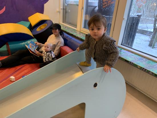 I dag tig skarnbasserne på en spontan tur til biblioteket, hvor vi legede og læste i bøger. Det var hyggeligt at køre i bussen og der blev spist mariekiks inden vi skulle hjem igen- mums.