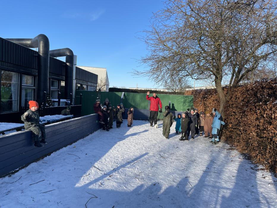 I dag tog Skarnbasserne til havnen for at fiske krabber, men der var ingen krabber så vi fangede et par rejer. Vi tog hen på røgeriet og købte røget rejer som vi pillede og spiste- mums. Bagefter tog vi bussen tilbage til børnehaven, hvor vi spiste frikadeller med kartoffelsalat ude på vores bænke.