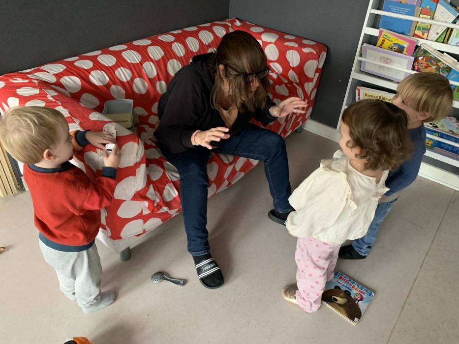Idag gik Matteo, Ronja, Theo og Christina ud på en lille tur i det dejlige vejr. Vi kiggede efter flotte blomster, og vi fandt Christinas yndlings blomst, syrener! Dem skulle vi dufte til, de duftede fantastisk! Vi pustede også til mælkebøtter og sagde hej til en sød hund. Kram fra Skrubberne :)