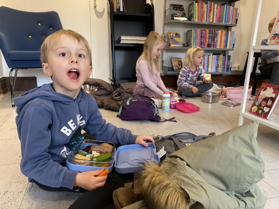 Idag har vi holdt øje med vores pandekager på bålet. Og så har vi spist køkkenets lækre okse/kål gryde med ris ude på bænkene ved bålet. Efter frokost legede vi lidt og kl. 14 fik vi endelig smagt på de lækre sager. Mums hvor smager pandekager godt med vores hjemmelavede syrensirup!