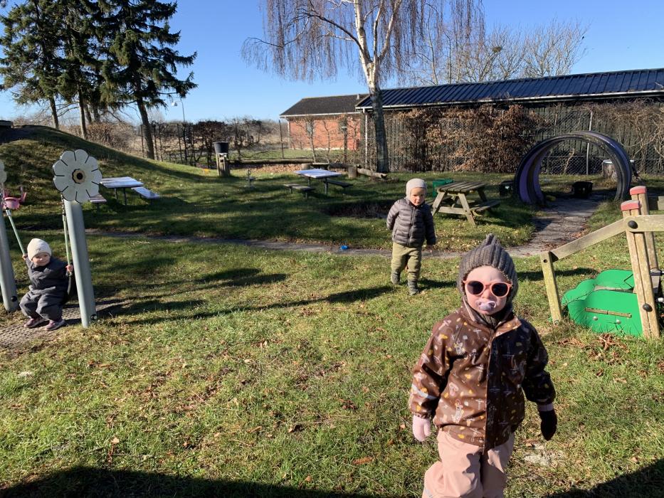 I dag var Fyrtøjets og Den Flyvende Kufferts børn slået sammen, så vi tog ud på tur. Vi fik set fårene der var helt tæt på, og sagde “Mæææh” meget højt og mange gange. Børnene synes det var rigtig sjovt og nogle blev helt forskrækkede! Vi fik også set et lille cykelløb tæt på - de kørte virkelig stærkt! En rigtig hyggelig og god tur.