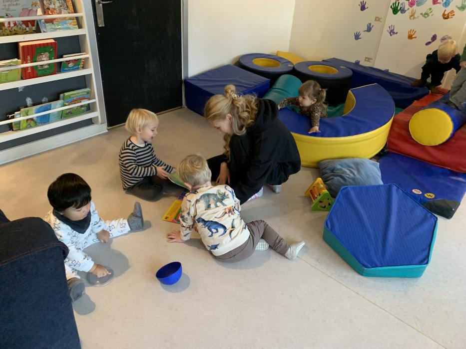 Efter formiddags mad tog vi tøj på og gik på legepladsen, der blev både leget fangeleg, med fuld fart på, gravet huller i sandkassen og gynget til den store guldmedalje.