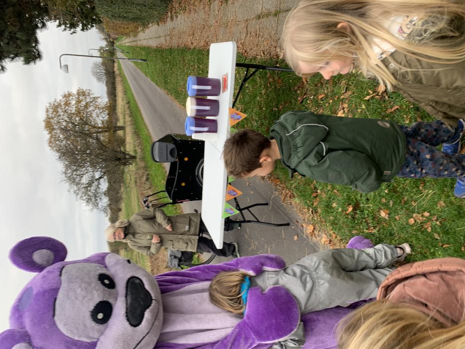 Vi øvede i at holde hinanden i hånden, gå på række og holde i vognen. Vi legede på Hvidtjørnens legeplads, så en masse hunde og spiste suppe med pasta da vi kom hjem.
