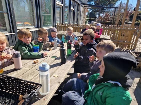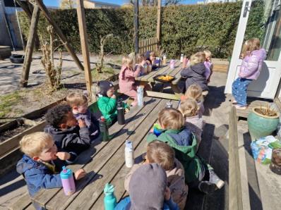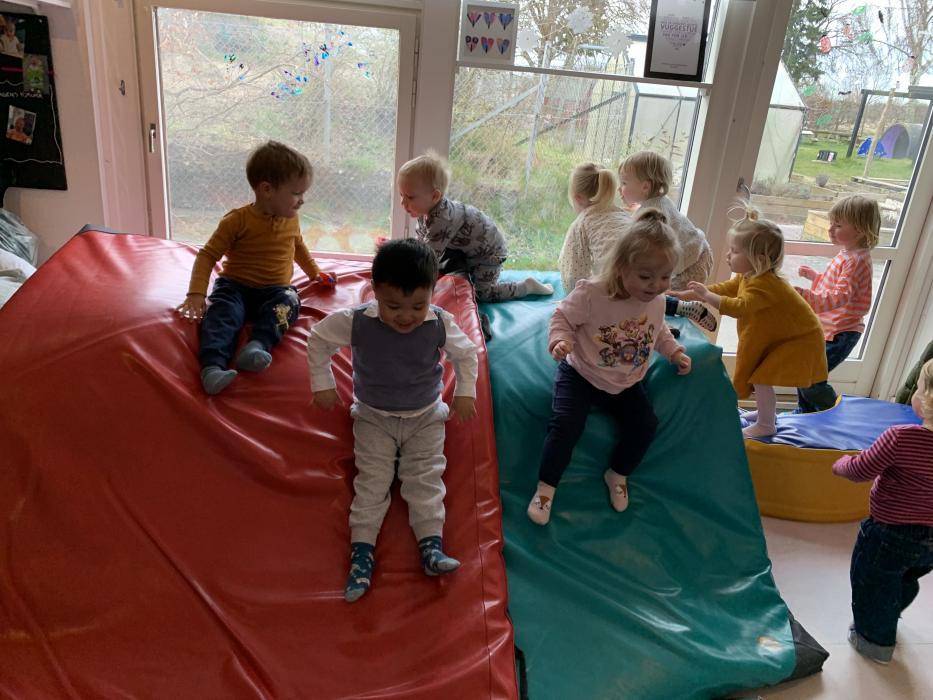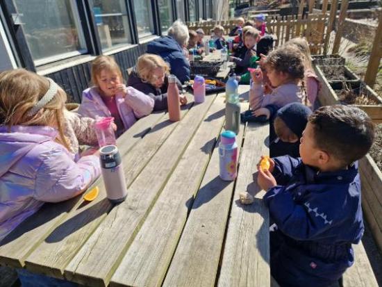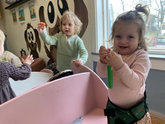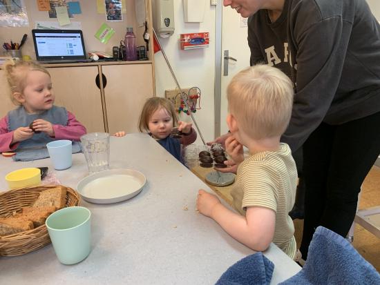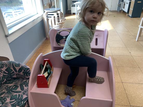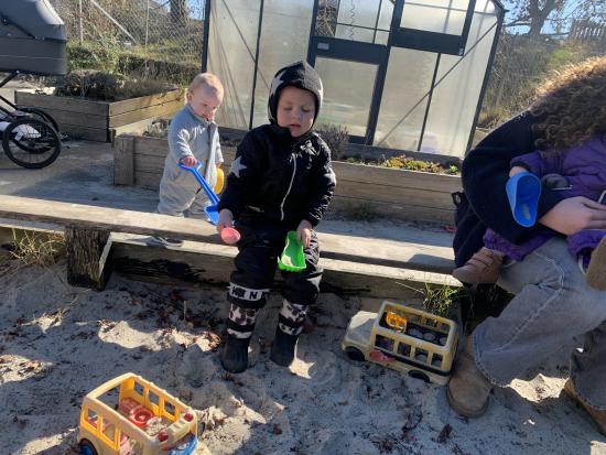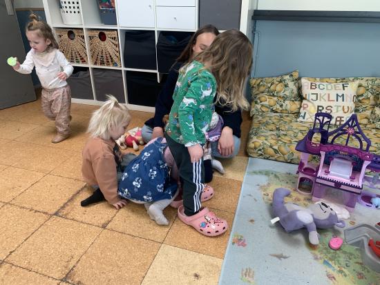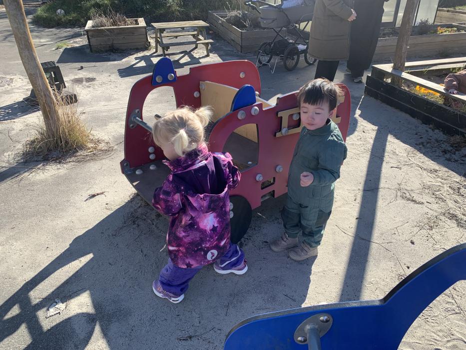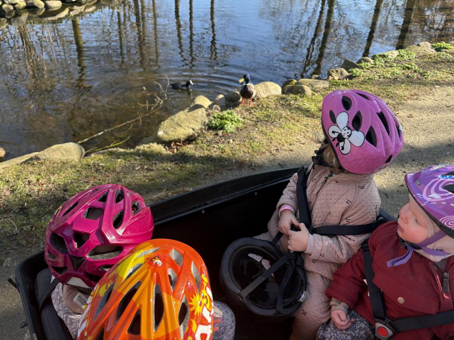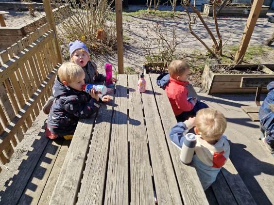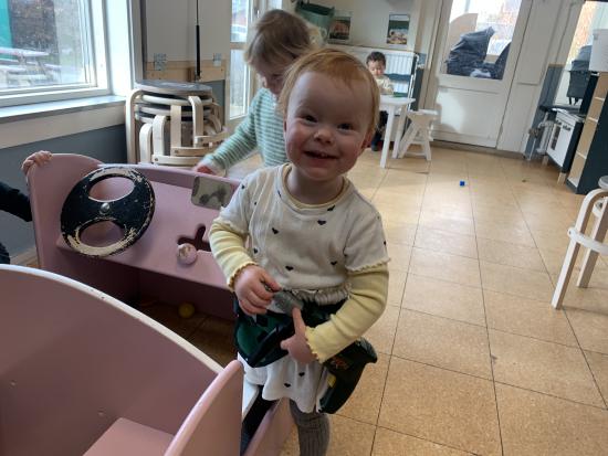 Marie, Alba, Carla og Miley har været ude og cykle. Storm, Mira og Vera har været i børnehaven og lege. Asta, Holly og Gabriel har leget på legepladsen.