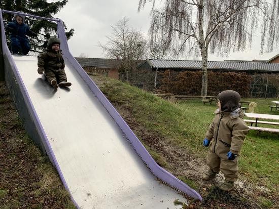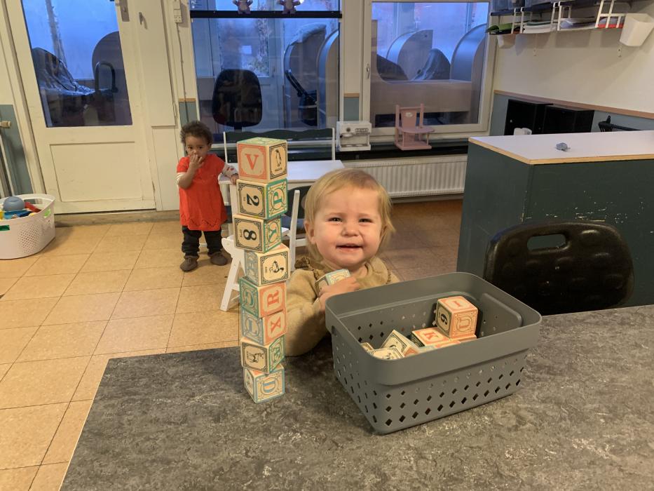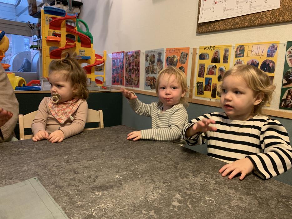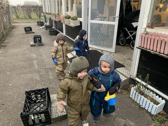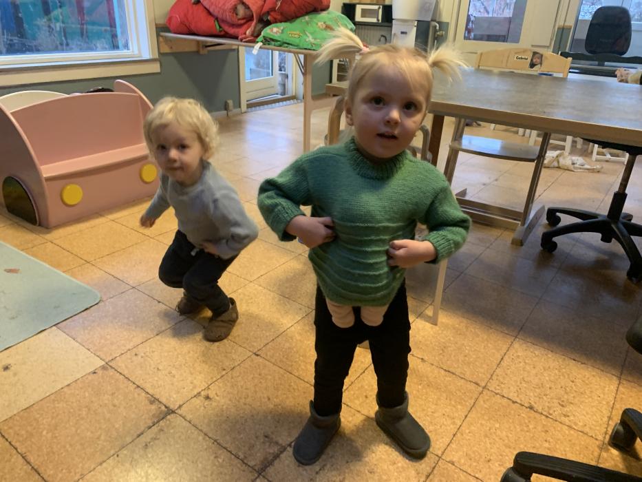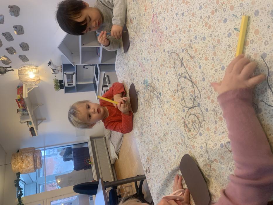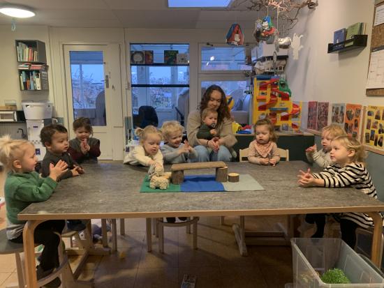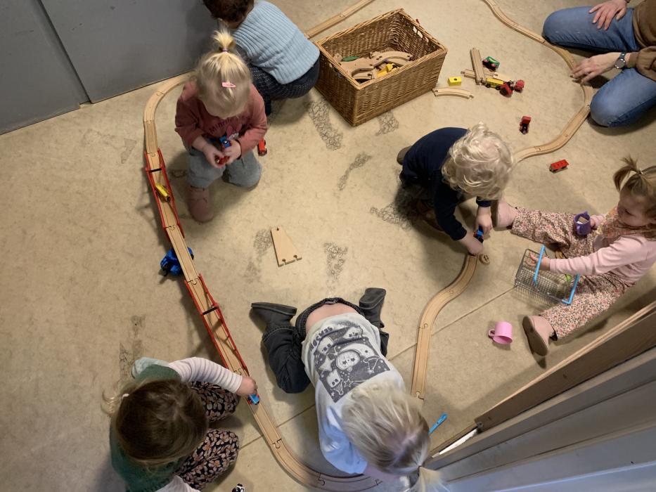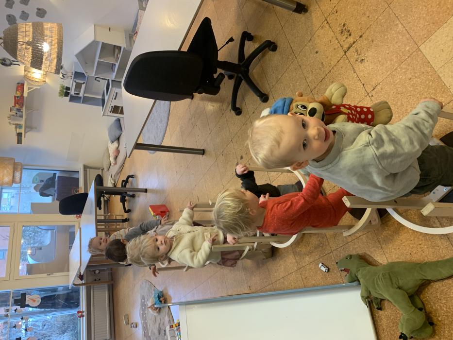 I dag har vi alle lavet en stor togbane, nogle prøvede Sofie og Lottes sko og så hørte vi alle Orm læse bøger højt om Børste og vennerne. Vi har også danset og leget på stuen :)