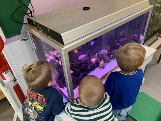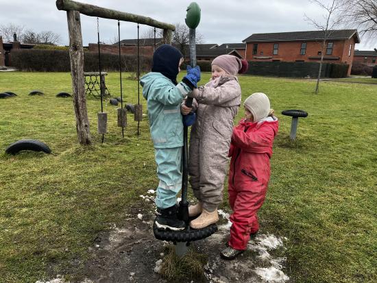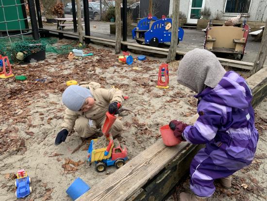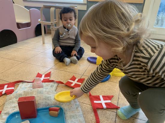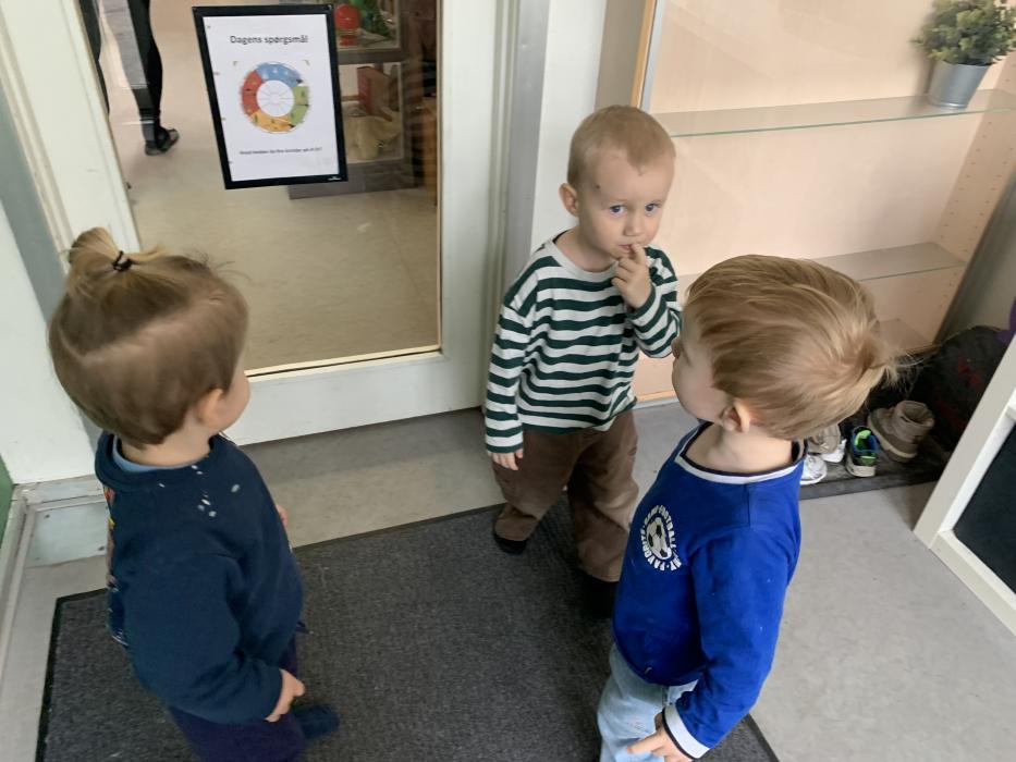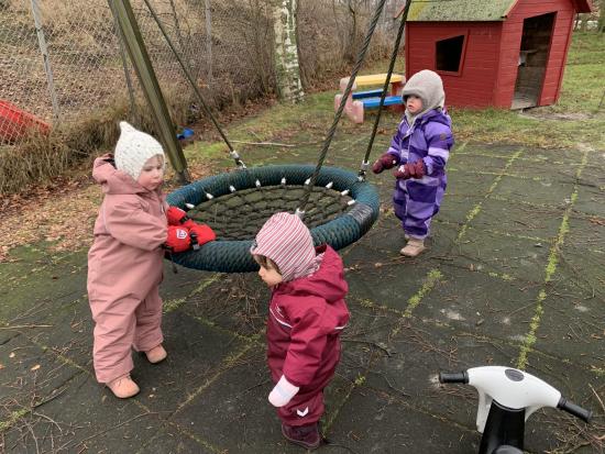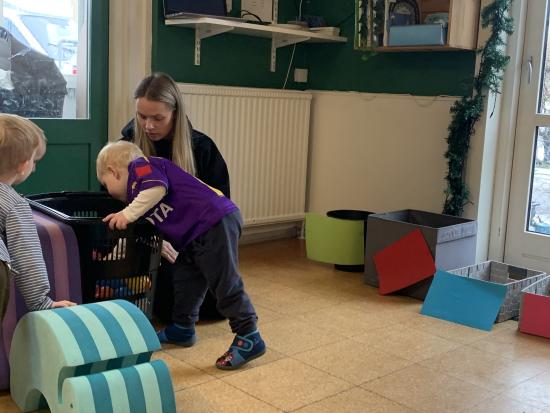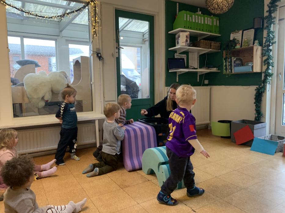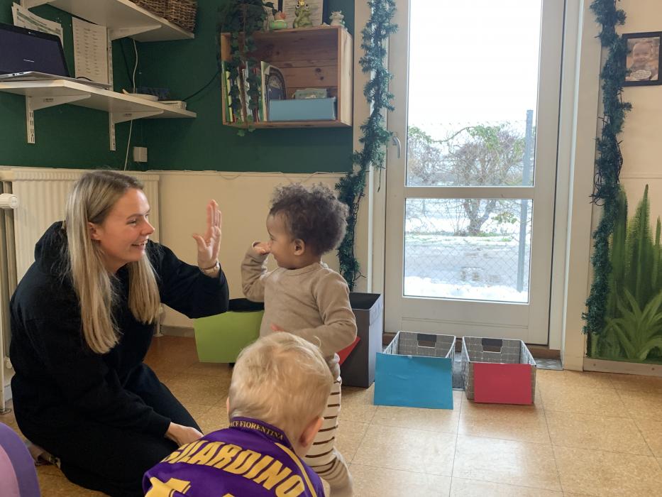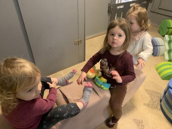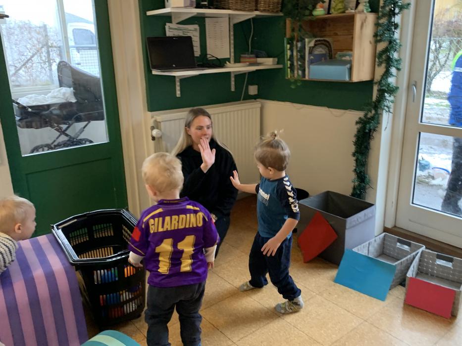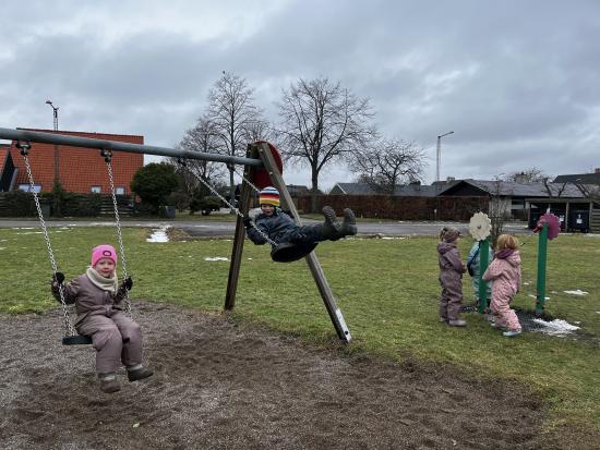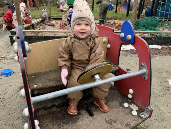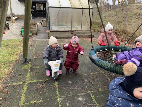 I dag har Leo, Villum og Luca været på besøg i børnehaven med Roseline. Det var spændende at lege med alle de store børn og deres seje legetøj! Vi andre gik på tur med Nikoline over til den lille legeplads på græsset, sammen med nogle af de store piger fra børnehaven :)