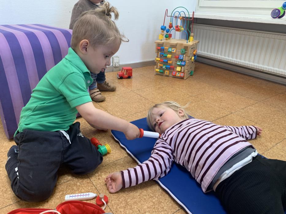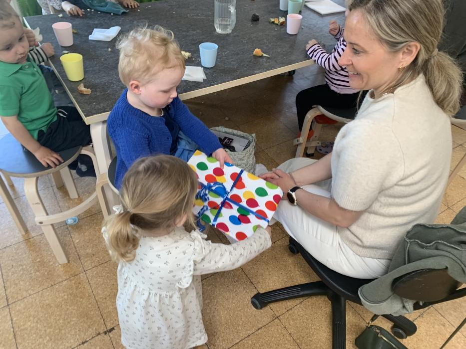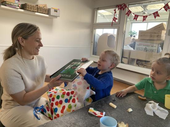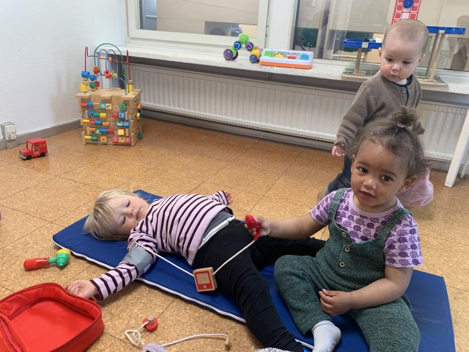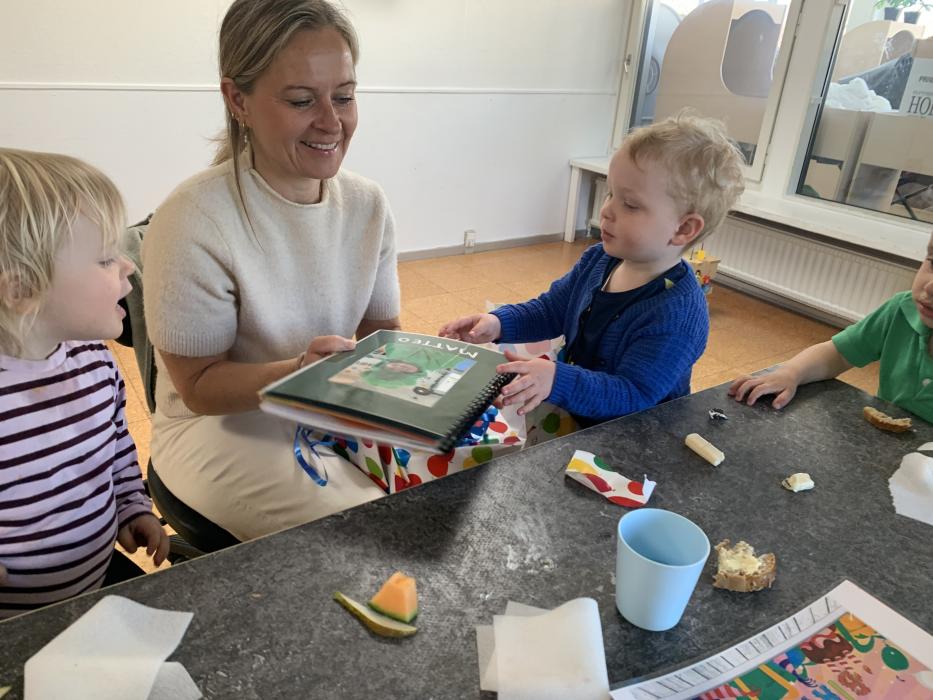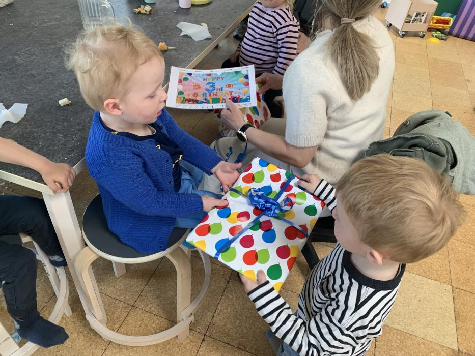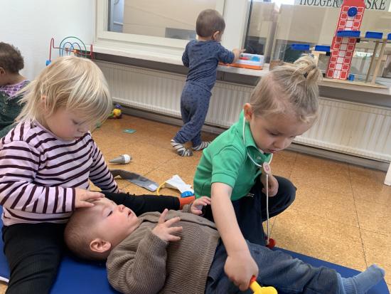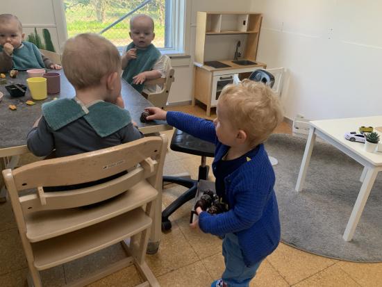 I dag er der nogle der har leget inde, hvor der er blevet sunget sange med vores sangkuffert og givet den gas til musik. Resten gik på legepladsen og nød det dejlige forårsvejr. Der blev kørt på motorcykler, leget sanglege og tegnet med kridt. Til eftermiddag skal vi alle på legepladsen, Jubii..