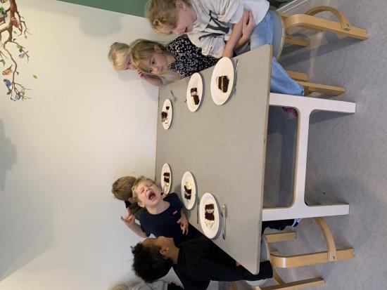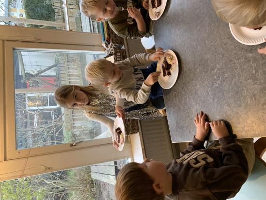 Hannah har holdt sin 5 års fødselsdag sammen men vennerne på Elverhøj. Hun havde en rigtig lækker chokolade kage med, som hun delte ud af. Mums det var godt! Der blev sagt tillykke, sunget fødselsdagssang og pakket gave ud. Sikke en dejlig formiddag. Stort tillykke til Hannah!