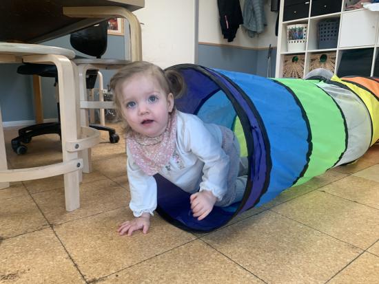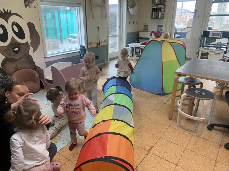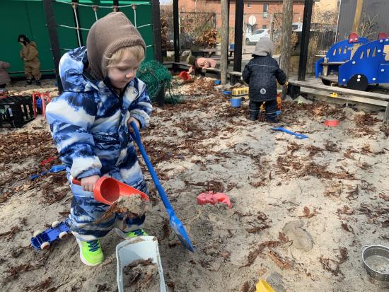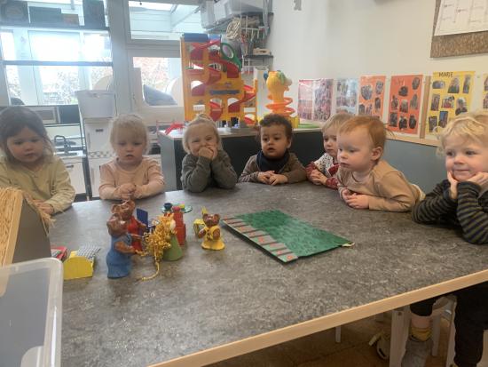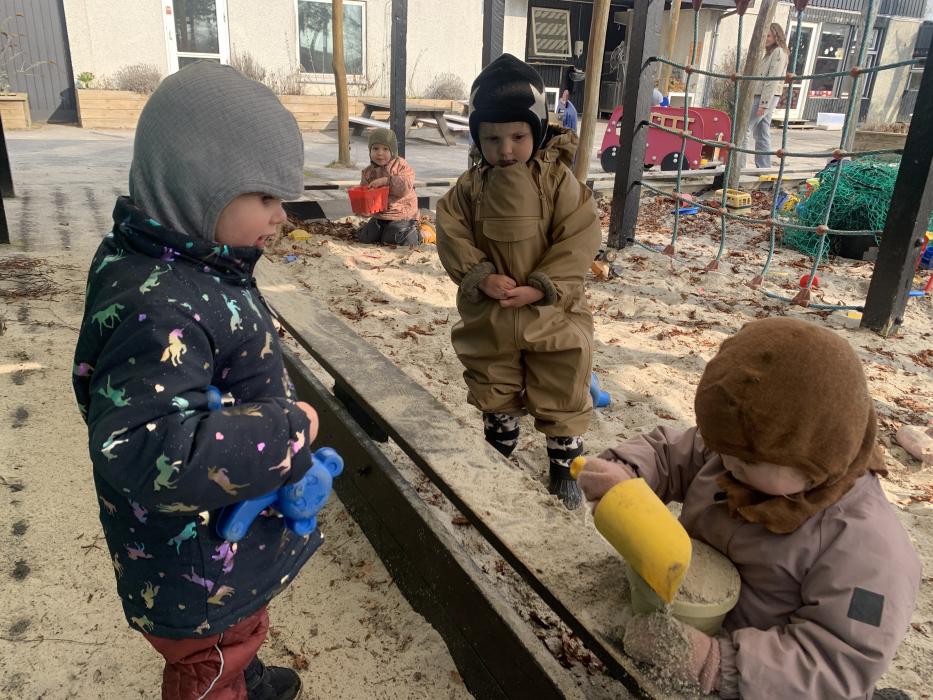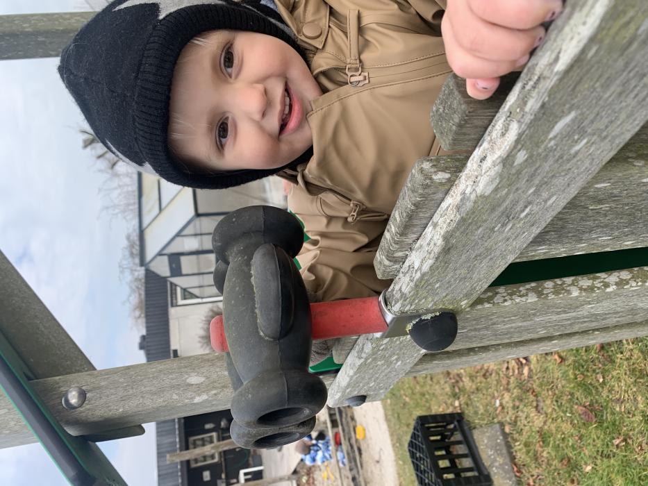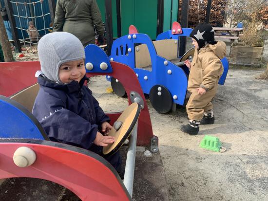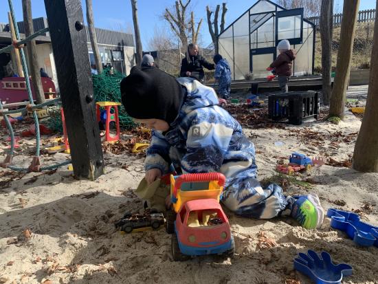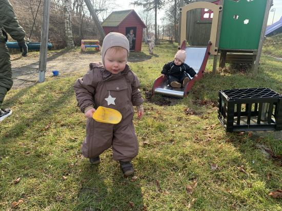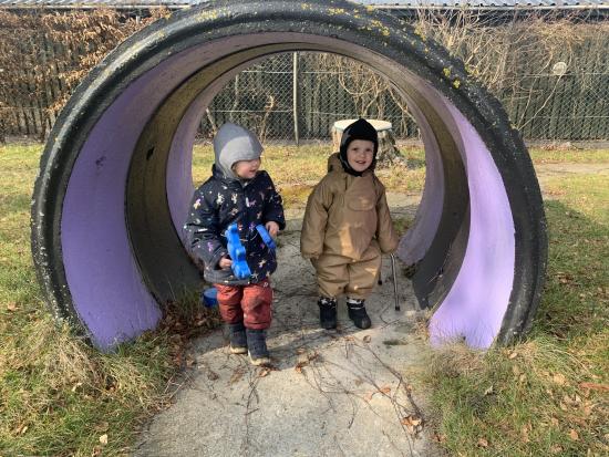 I dag har vi været ude og gå en tur i det blæsende vejr. Det var rigtig sjovt, og vi kunne mærke vinden ruske om os. Undervejs stødte vi på en stor kran, som vi kiggede nærmere på, den var virkelig stor!