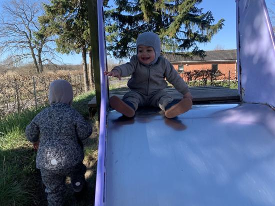 I dag har vi holdt fødselsdag for Ida, hun fyldte 2 år i går. Efter vi havde fejret Ida tog vi sangkufferten frem og skiftedes til at vælge en sang. I går var vi på legepadsen i det dejlige vejr.