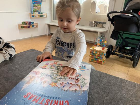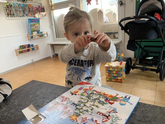 Jubiiii, så blev december skudt i gang! Leo pakkede vores første gave op i pakkekalenderen, en fin hoppe spiral i flotte farver! Det var også Leo der åbnede chokolade kalenderen, så er vi i gang :)
