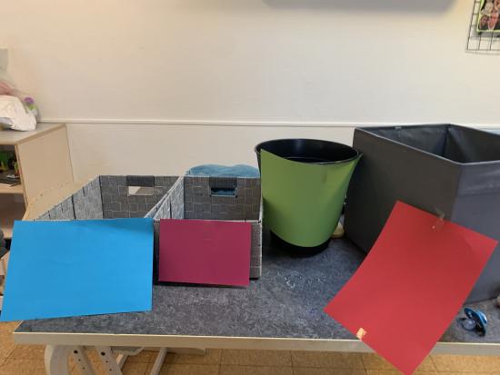 I går havde vi også farve tema! Vi havde sat farve skilte på vores kasser også skulle vi gå hen og kaste de rigtige farver bolde i kaserne. Vi sludrede af med High five!