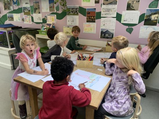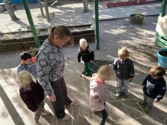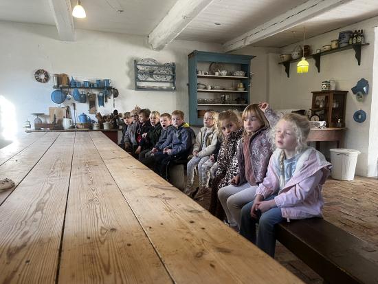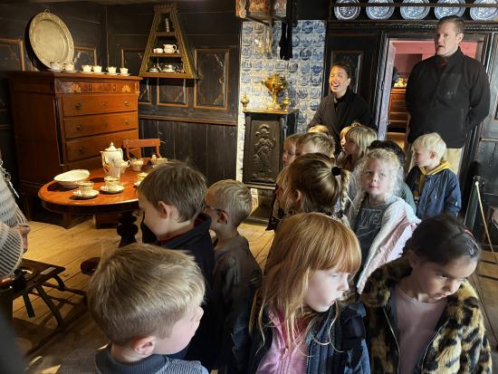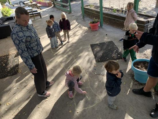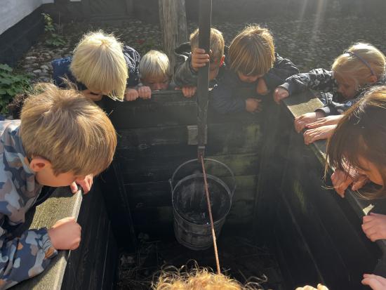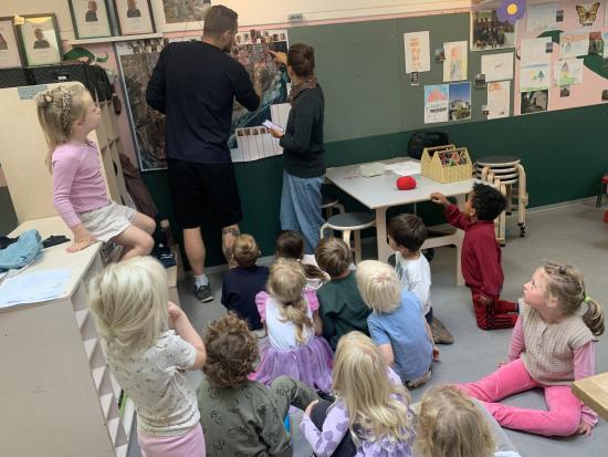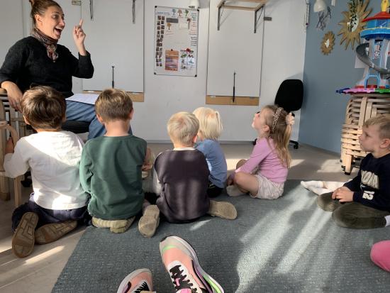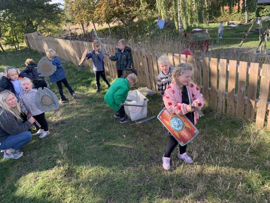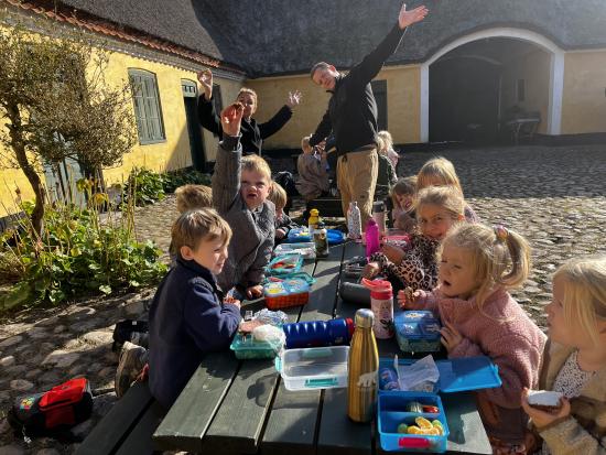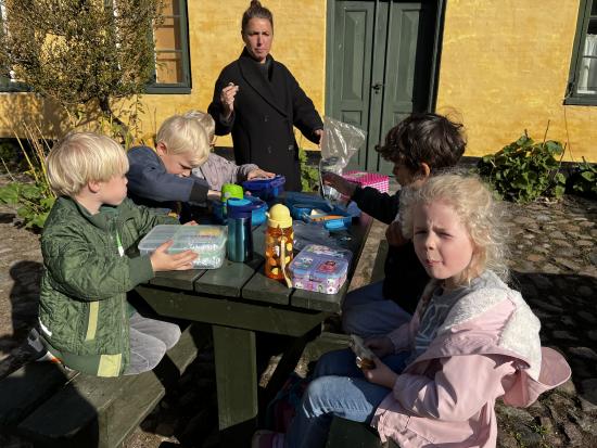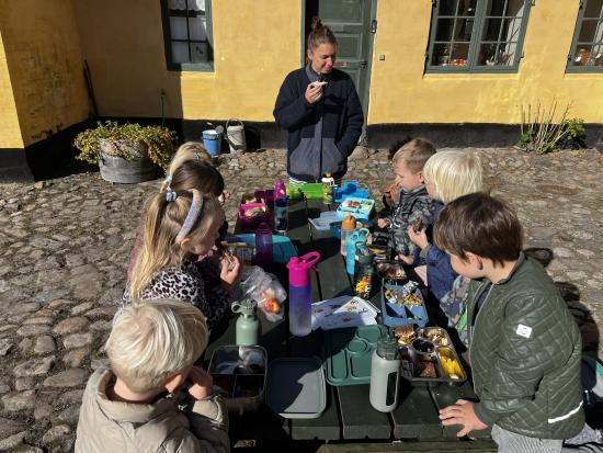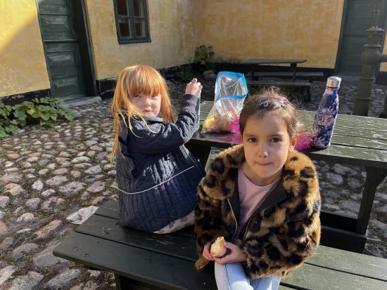 Skarnbassen har til morgensamling snakket om hvilket eventyr der er et æble med- og de gættede hurtigt at det selvfølgelig er “Snehvide”. Derfor fik de højtlæsning inden frokost, hvor de hørte den spændende historie om den onde dronning som har et fortryllet spejl. Om Snehvide som er så smuk, at dronningen hader hende for det. Heldigvis finder Snehvide nogle gode venner (de 7 dværge) meeen den onde dronning finder hele tiden på nogle ikke særligt søde ting for at komme af med Snehvide.
