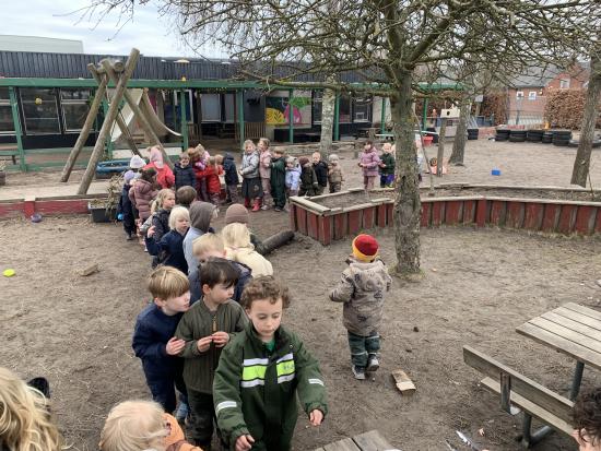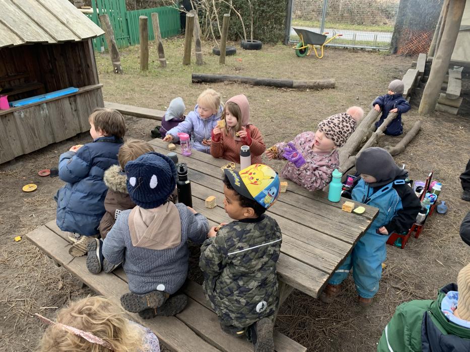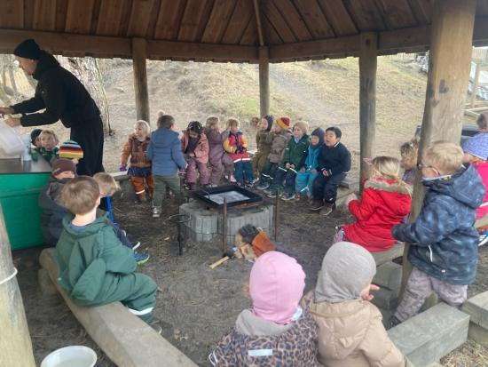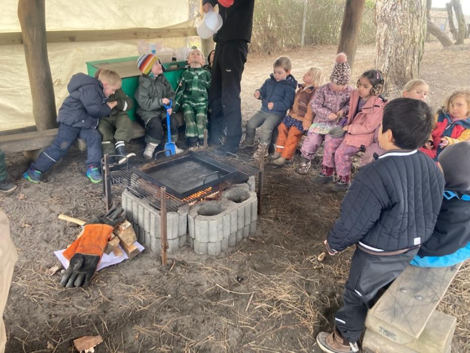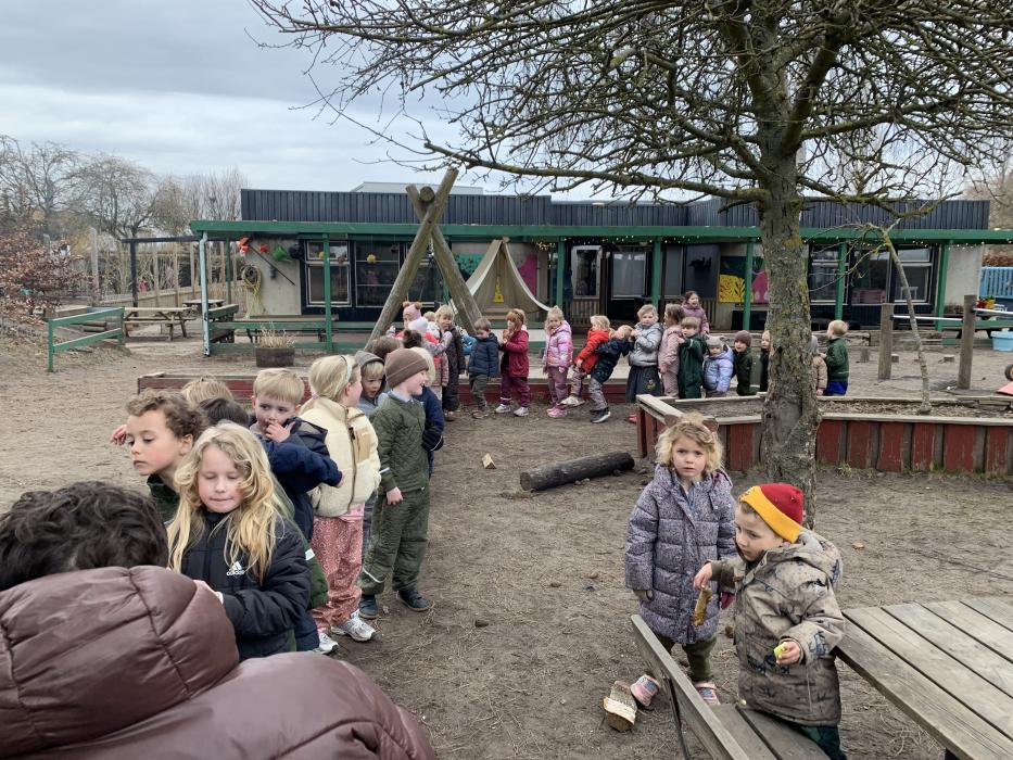 I dag har hele sommerfugle gruppen været på besøg på Strandengens SFO. Vi gik i samlet flok derhen og alle var bare så gode til at holde i hånd og gå fint på række hele vejen. Vi blev mødt af Lars (SFO leder), som bød velkommen og bagefter sang vi Bamseven sangen og så kom Bamsevennen ud! Vi fik en kæmpe krammer og sang "En lille and" sammen med Bamseven. Så var der ellers fri leg på den nye, spændende legeplads, mens vi ventede på pandekager.