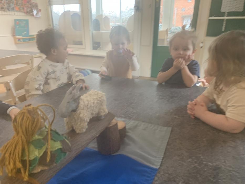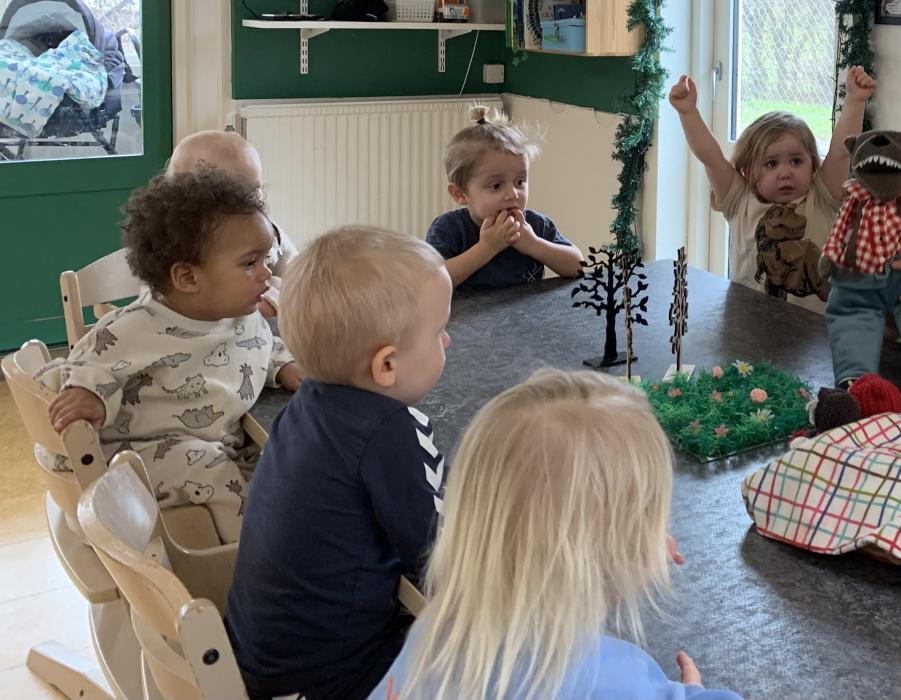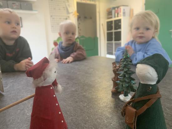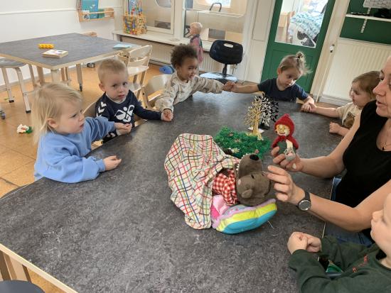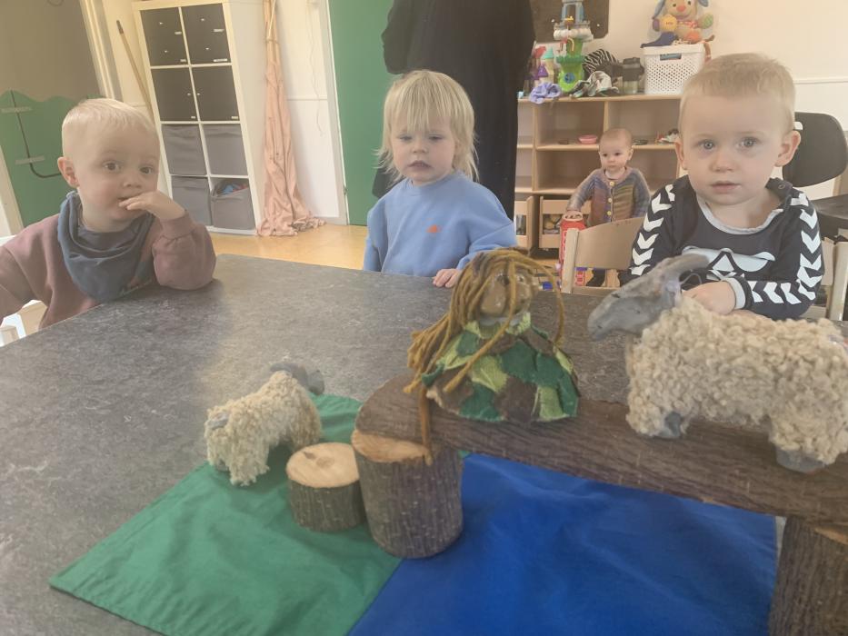 I dag har vi set bordteater. Vi startede med at se De 3 BukkeBruse og Trolden. Bagefter så vi Rødhætte og Ulven, og til slut så vi Guldlok og de 3 Bjørne. Vi sang også I en skov en hytte lå :)