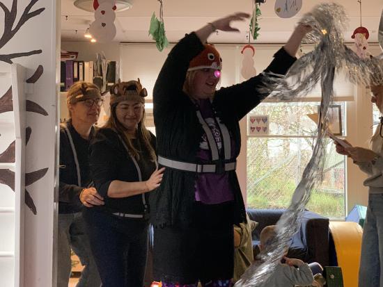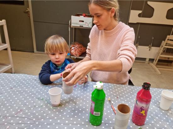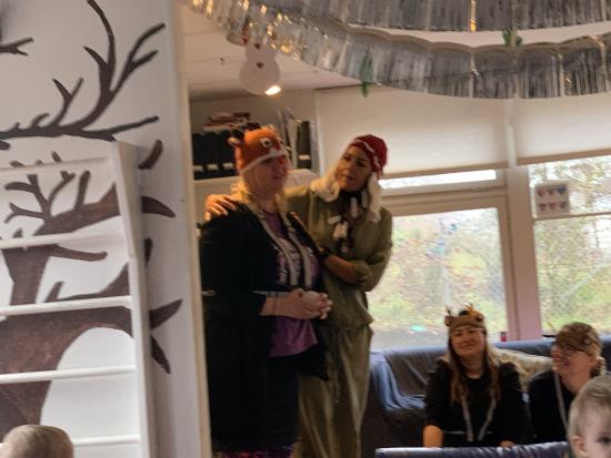 Inde på stuen blev der danset til musik, leget med biler, og nogle gik i køkkenet og lavede mad:(