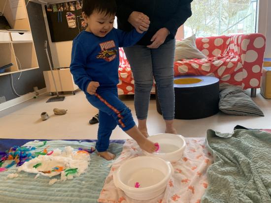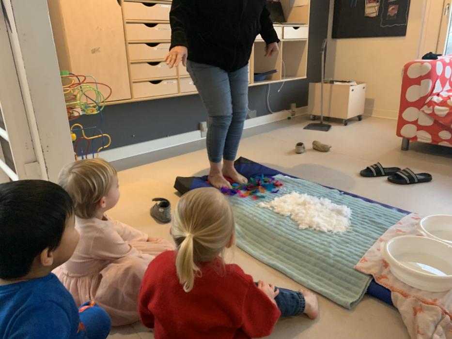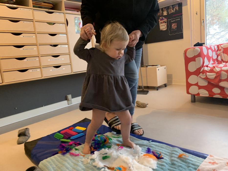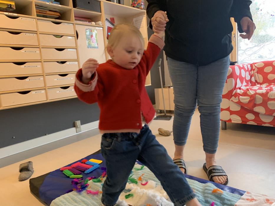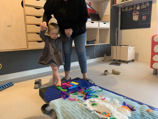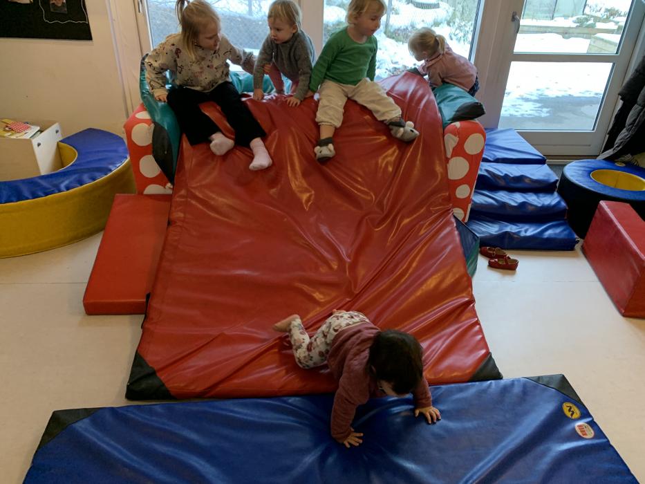 Velkommen på Tepotten - her har vi en særlig fokus på den motoriske udvikling og har derfor valgt at indrette stuen med et stort puderum, hvor børnene kan udfolde sig med klatring i ribber og balancere og hoppe i puderne. Puderrummet bliver også benyttet til at skrue op for musikken, så vi rigtigt kan danse, fjolle og hygge os.
