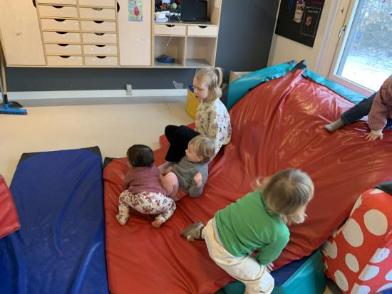 Idag har vi været opdelt i grupper, og larverne skulle ud og øve sig i at gå. Der sker jo så meget spændene når man er ude i naturen, så vi skal lige lære stadigvæk at gå pænt og holde vores gåmakker i hånden ;) Vi fik også leget lidt på legepladsen hvor vi kunne øve os i at klatre og gynge.