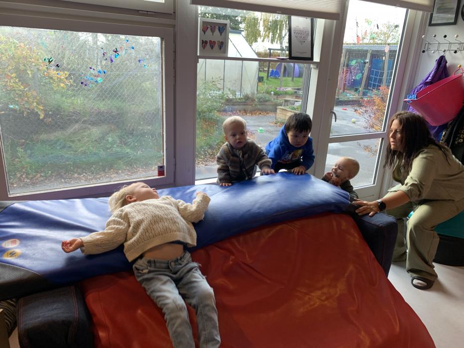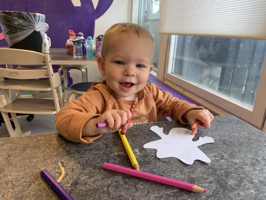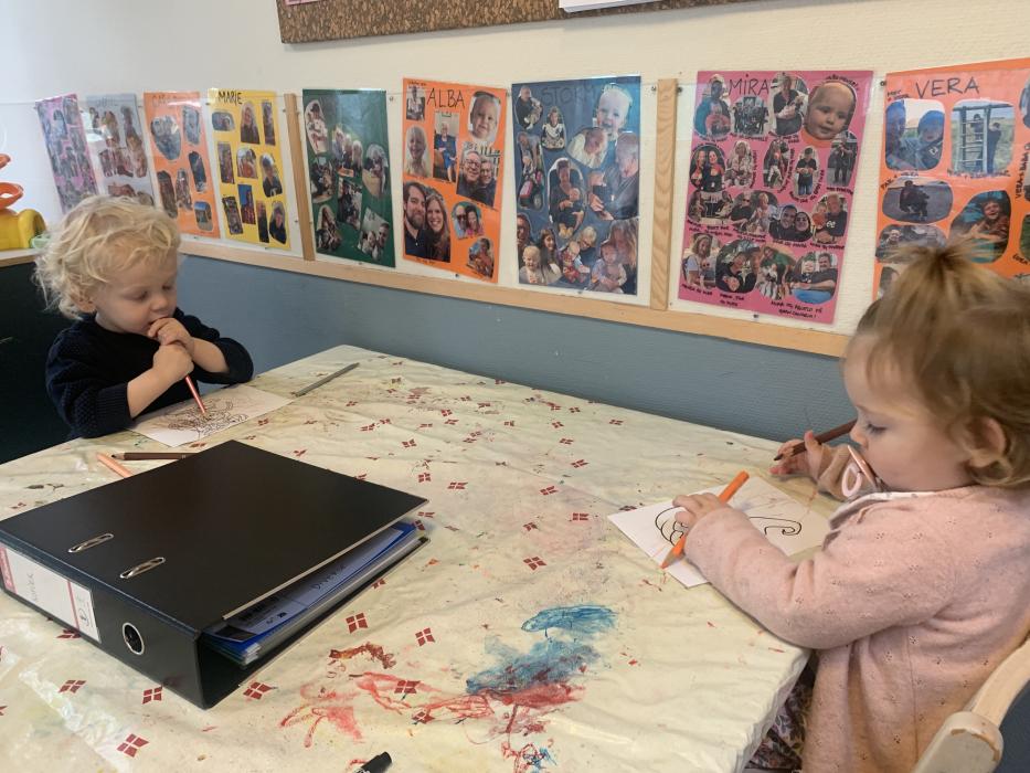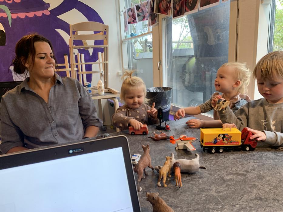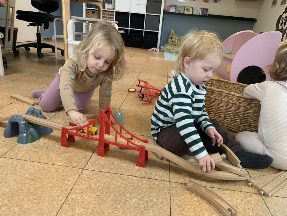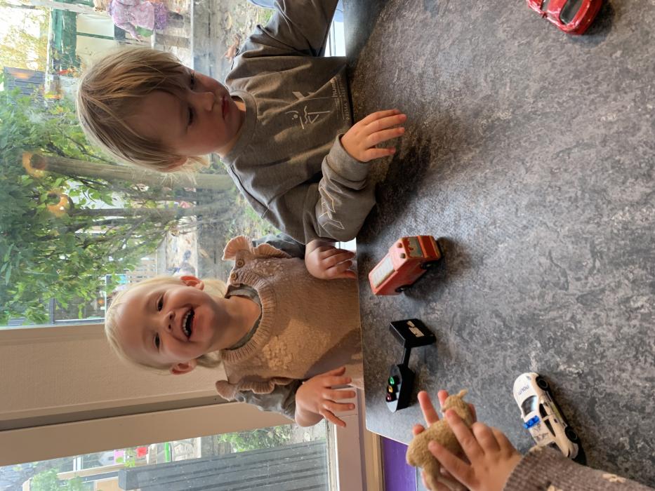 så har vi bygget en stor rutsjebane, som børnene har haft en fest med at rutsje ned af:) I denne forbindelse fik vi øvet at “vente på tur” og stå i kø - det var lidt svært, men i sær de store på stuen fangede det, og var så dygtige til at vente:)