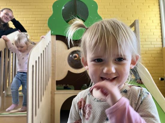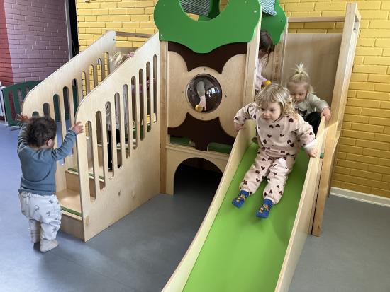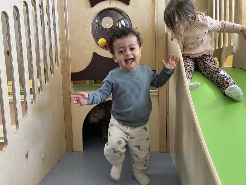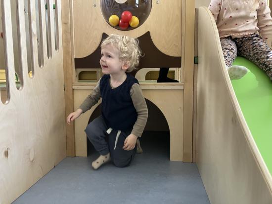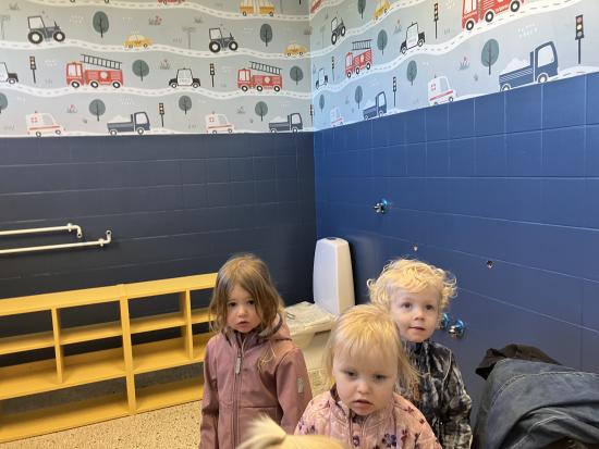 Børnene så ud til at de synes det var spændende og sjovt. Vi så vores nye stue, vores store badeværelse med biltapet, vi så ud på legepladsen, var rundt at se både DFK, Skrubtudsen, Tepotten, Hvor de skal sove, de voksnes pausestue og til sidst legede vi i fællesrummet - det var spændende :)))