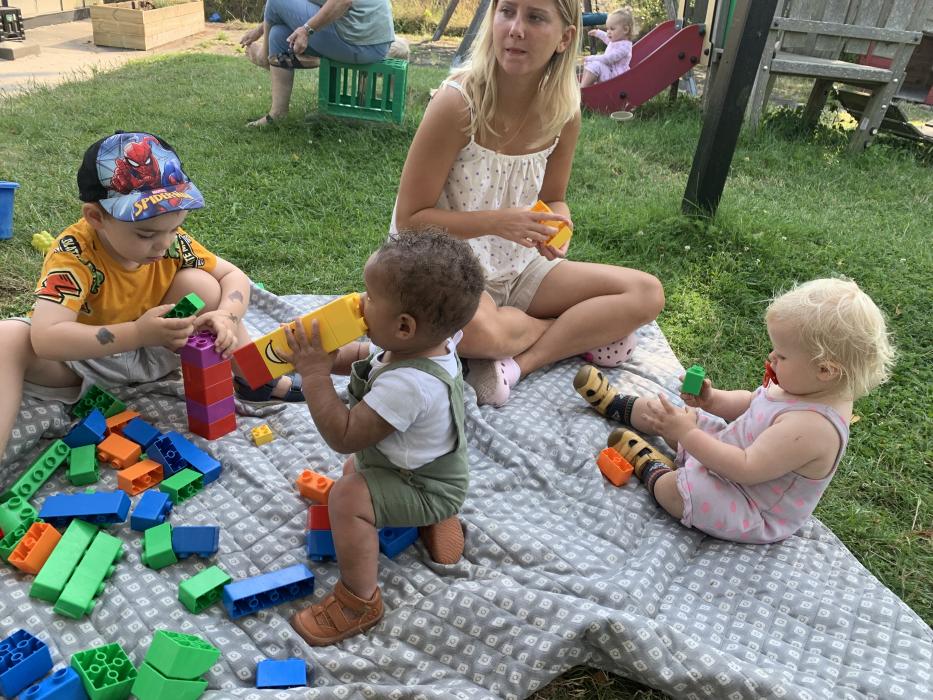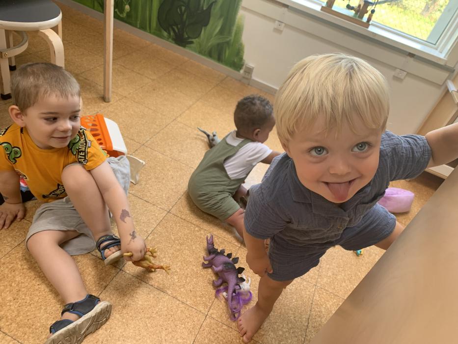 I dag har de store, Alberte og August været i tinsoldaterne (se skriv herom) og resten af matroserne, har været på stuen, hvor vi har tegnet og bygget med magneter. Da tålmodigheden ophørte for nogle, trak vi ned på gulvet, hvor vi bl.a. lavede en masse koldbøtter, til stor fornøjelse for børnene, masser af hjertelige grin:)