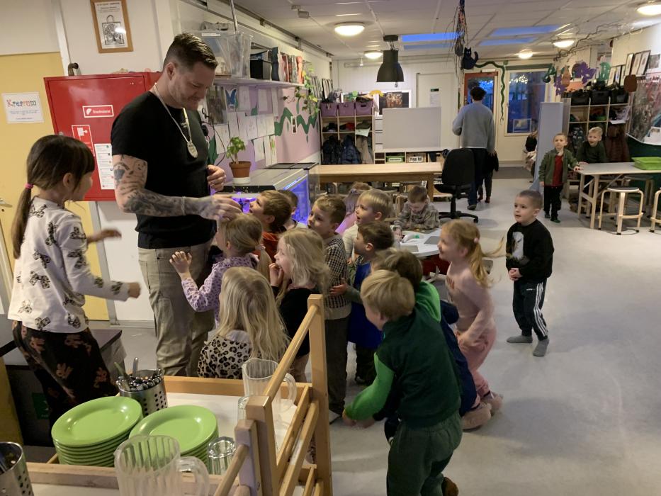 Idag har skarnbassen hørt historien om Pindsvinet der flyttede hjemmefra. Pindsvinet lærer en masse nye ting f.eks at rulle ned af en bakke, spise kantarel og bade. Det er ikke alt den synes er sjovt men så hr den lært det! Efter morgensamling tog vi overtøj på og gik ud og rullede som pindsvin på bakkerne og legede “Lille pindsvin, der nogen der har taget din REGNORM”! Og gør et pindsvin? Nej da, den smasker for den er jo sulten efter at have ligget i vinterhi!