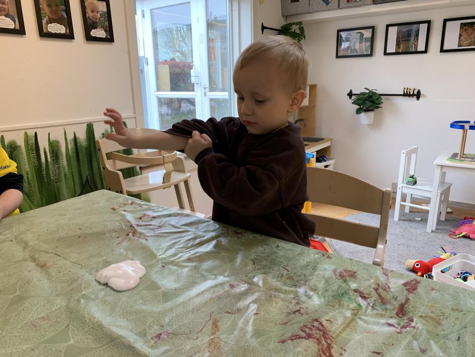 Idag har vi leget sanseleg med vand og bolde fra kuglebadet. Vi gav den fuld gas med godt humør og vandplaskeri. Det har været den sjoveste tirsdag! Kh de Skrubber der ikke var med i Tinsoldaterne. PS der hænger poser med vådt tøj på jeres børns pladser, de vil godt med hjem :)