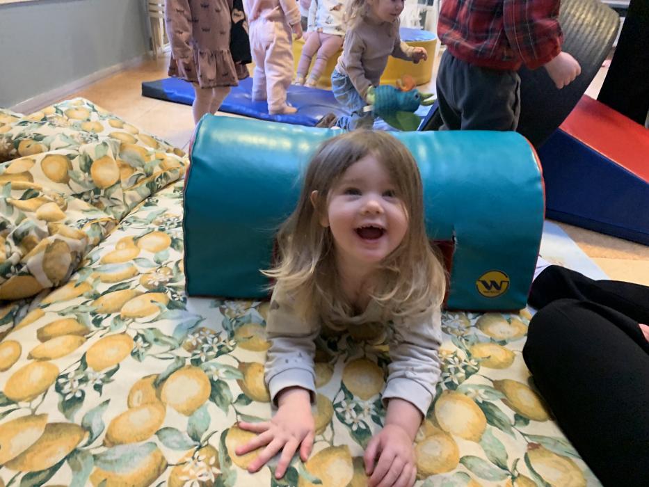 Store stykker karton er blevet pyntet så fint med fedtefarver. Alle Lego duplo klodserne har også været en tur ude på hele gulvet og vi har bygget og leget