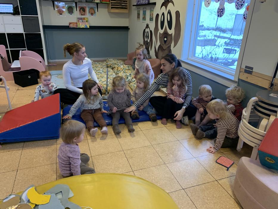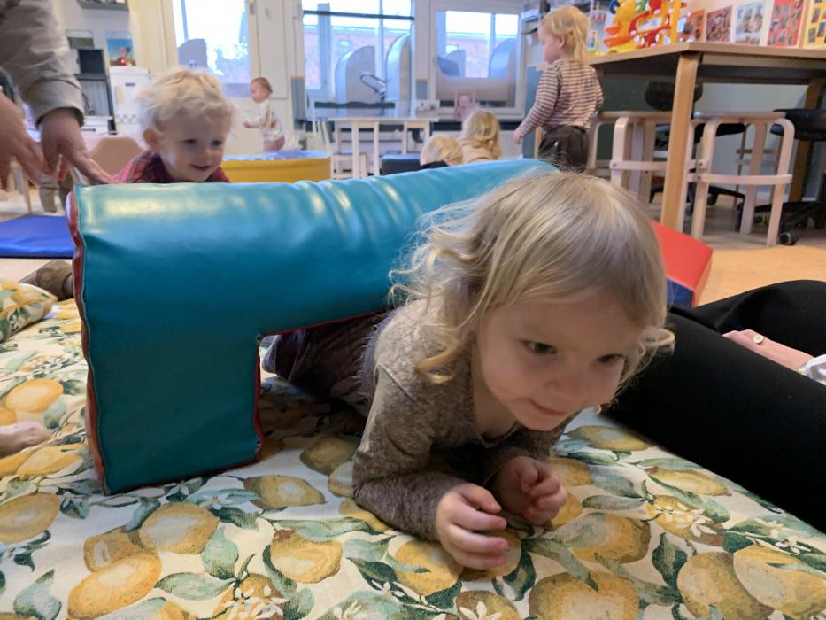 Frederik, Ella, Christina, Sander, Villy, Viggo, Daniel, Frida, Caroline og AB cyklede en tur ned til Dragør by. Vi talte og sang i mens vi kørte. Bastian har været i børnehaven med Lilli og Kirsten fra den flyvende. Vester legede inde på den flyvende kuffert i formiddags.Til frokost har vi spist rugbrød.
