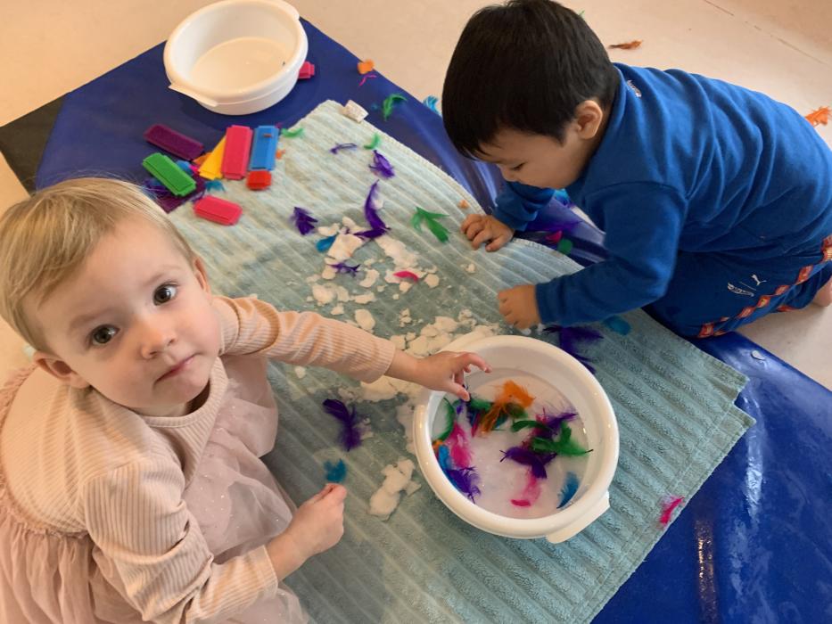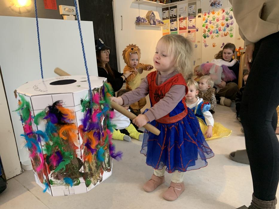 Ella, Bastian, Sander, Viggo, Andrea, Villy, Christina og Daniel har været ude på en regnvejr gå tur. Selvom det ikke regnede, så var der en masse vandpytter som var så sjove at hoppe i. Frida, Vester og Frederik har leget på stuen.