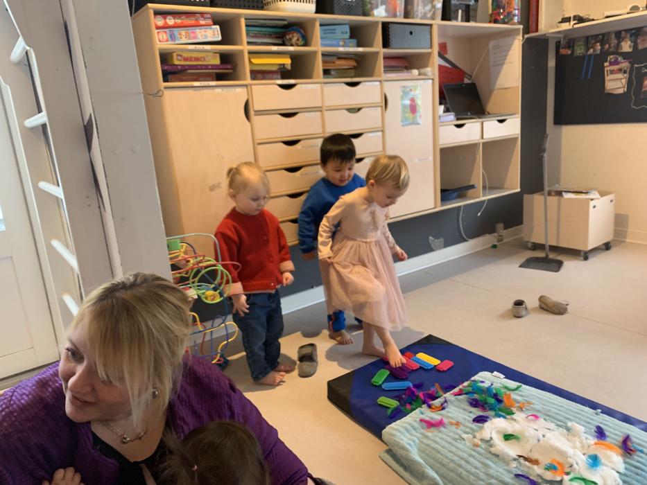 I denne uge har vi været på gåtur, lavet krea med farver, tegnet, haft bogglad, rytmik, og leget på stuen med klodser, i køkkenet og med dukker. Vi har et hammerbræt på stuen, som er i meget høj kurs. Men vi har kun det ene, og selvom det er en god øvelse i at vente på tur, så kunne vi godt tænke os et par stykker mere. Så hvis nogen har et stående som ikke blir brugt, så tager vi gerne i mod det. - god weekend.