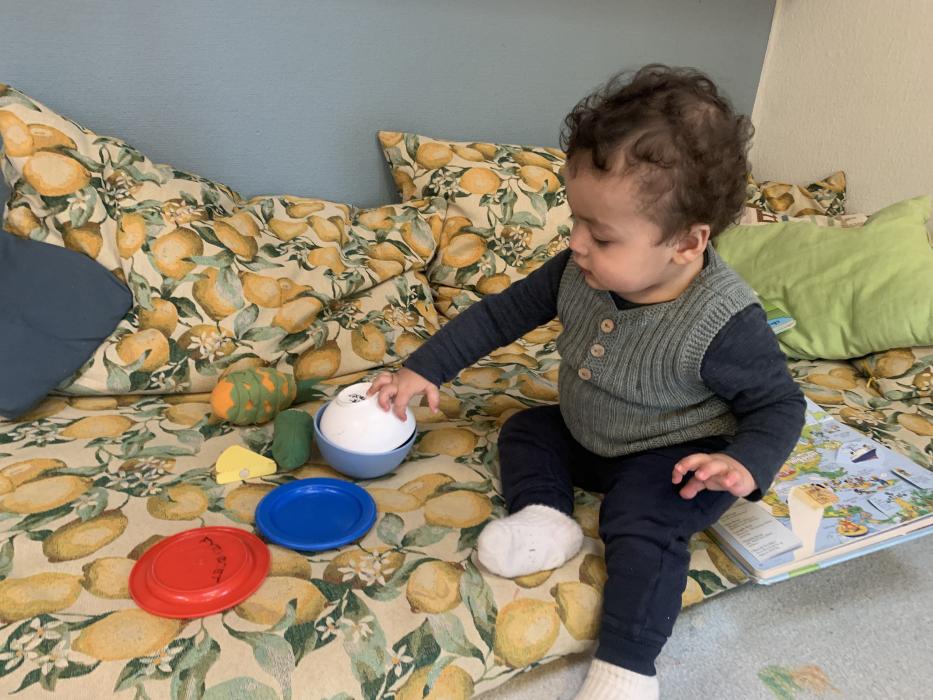 Felix var i børnehaven til formiddag, det synes han var fedt, og han legede med Diego fra den flyvende kuffert, som også skal starte på stuen på mandag.