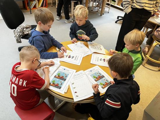 Idag har Frida, Christina, Sander og Viggo gået en tur. Vi så får, køer, hunde, en bus, en lastbil osv. Daniel, Villy, Frederik og Vester har leget på legepladsen :)