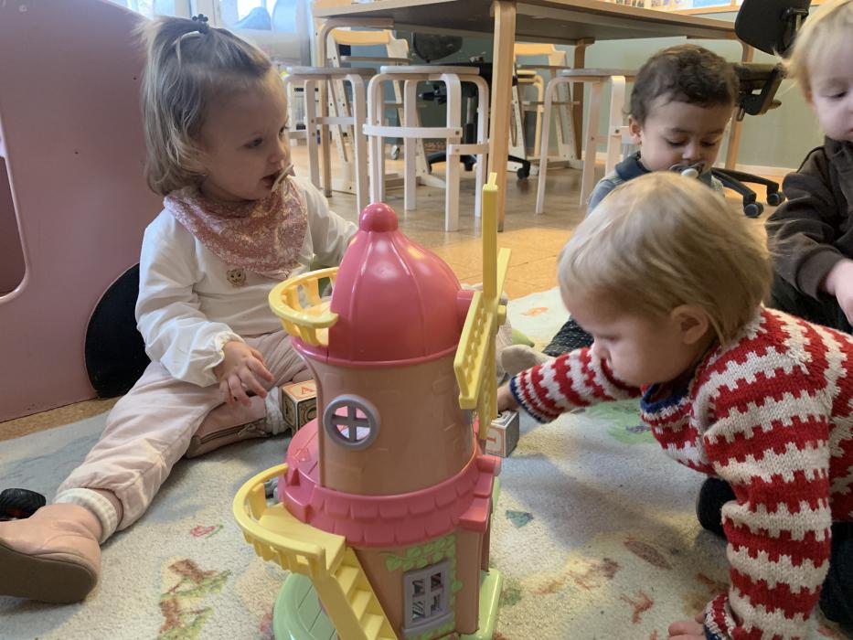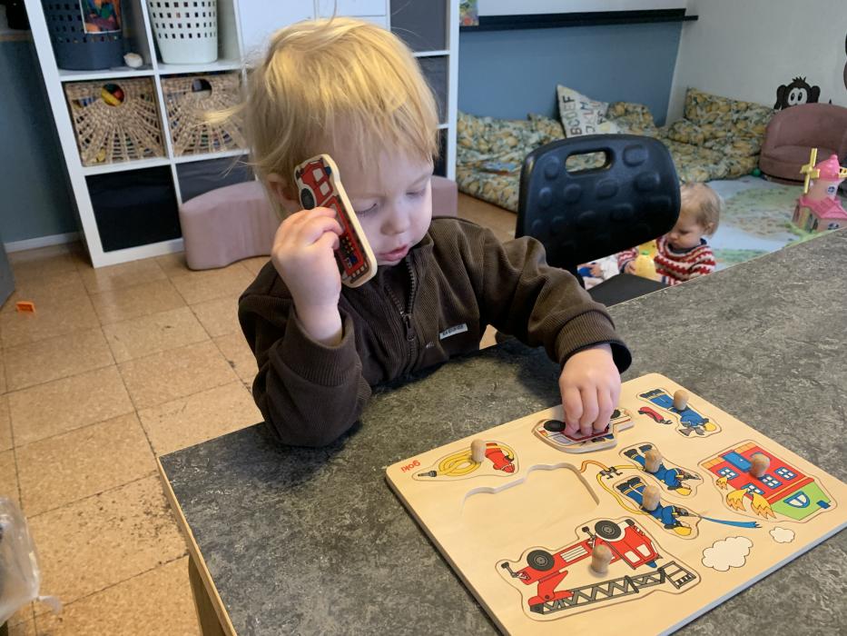 Idag har vi leget på stuen. Vi har lavet mad i legekøkkenet, leget med magneter, leget med biler, læst bøger og meget andet.