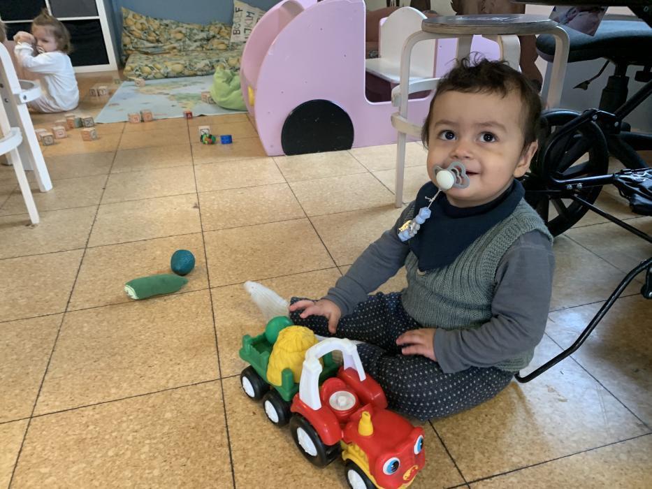 Frida er glad for at være i vuggestue og virker helt tryg, så det er så dejligt.