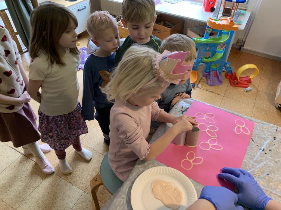 Vi har haft krea dag på Tepotten i dag. Det var virkelig mærkeligt at male fine malerier, UDEN at få maling på fingrene. Men det var sjovt og alle blev ved med at kigge undrende på fingrene og kunne slet ikke forstå at de ikke var beskidte. Flotte billeder blev det til.