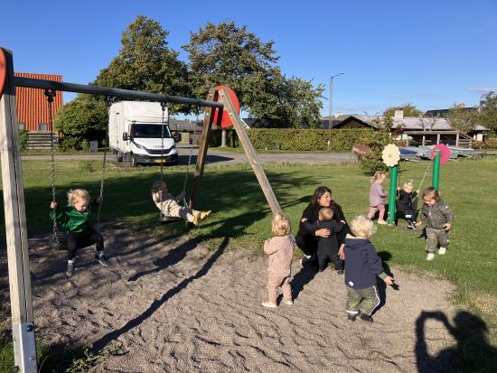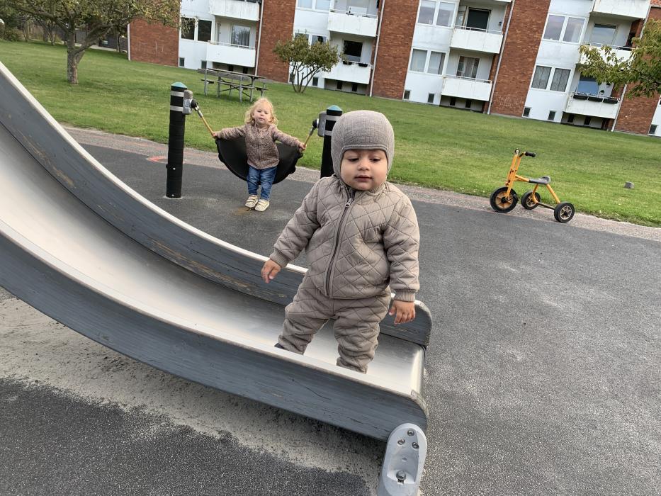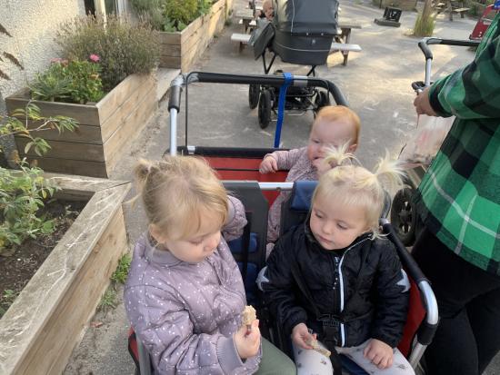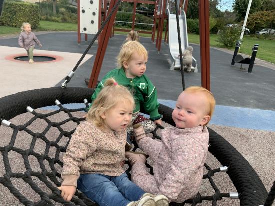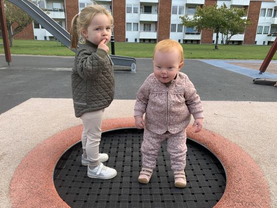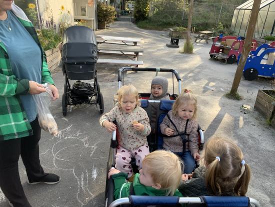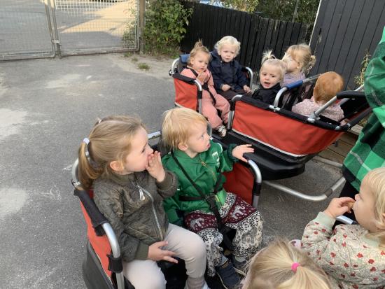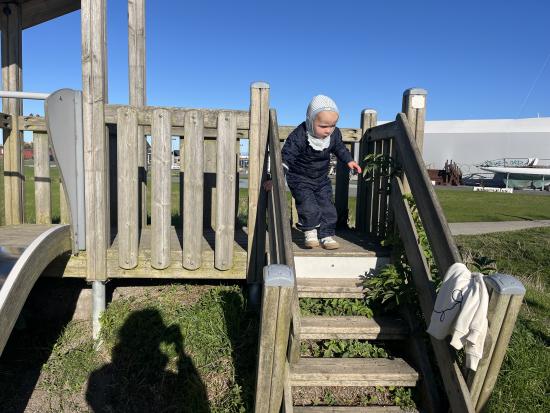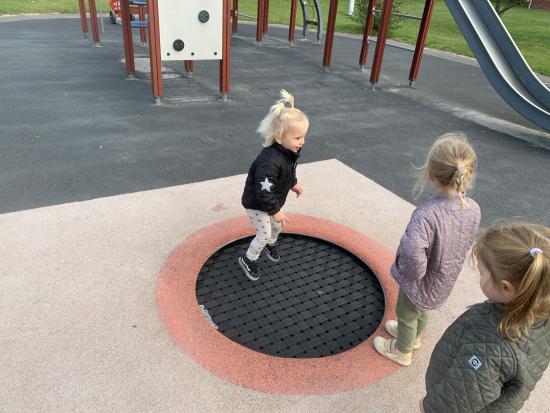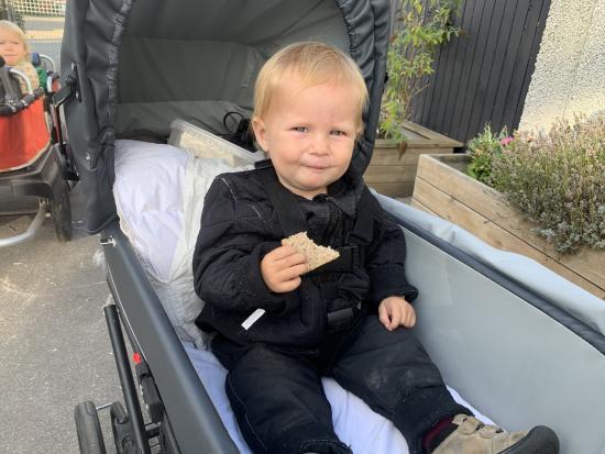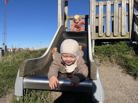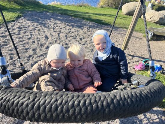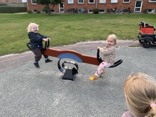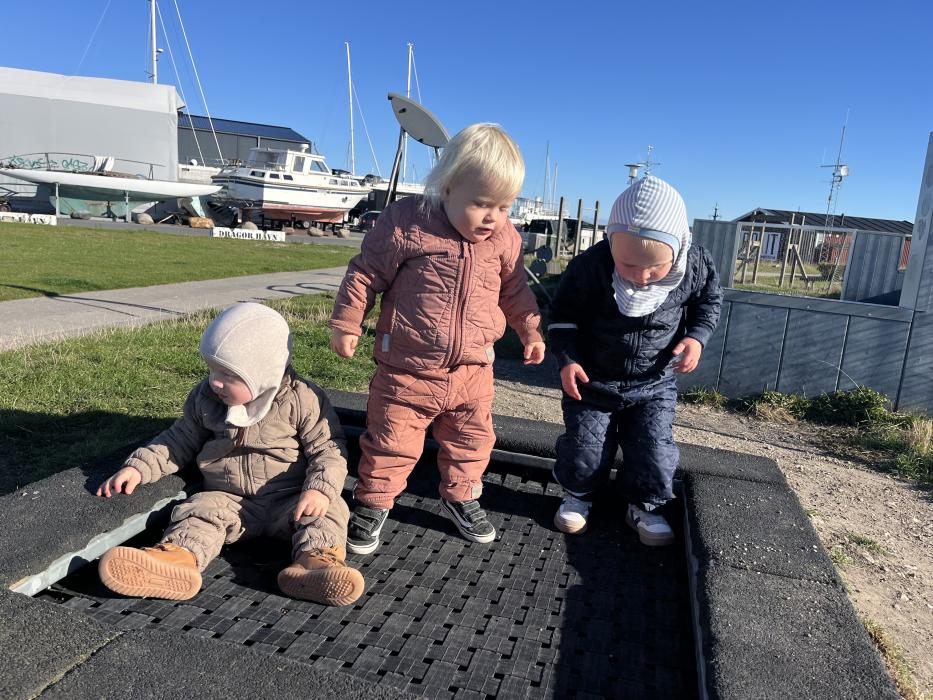 I dag har Matteo, Vega og Knud været på cykeltur med Nikoline. Vi cyklede ned i havnen og legede på legeplads. Vi rutsjede, gyngede og hoppede på trampolin, det var sjovt! Midt i legen kunne vi høre en høj lyd. Det var skibsmekanikeren som bankede og reparerede skibene! Så kørte vi hjem og spise lækker tærte i vuggestuen, efterfulgt af lur. God weekend :)