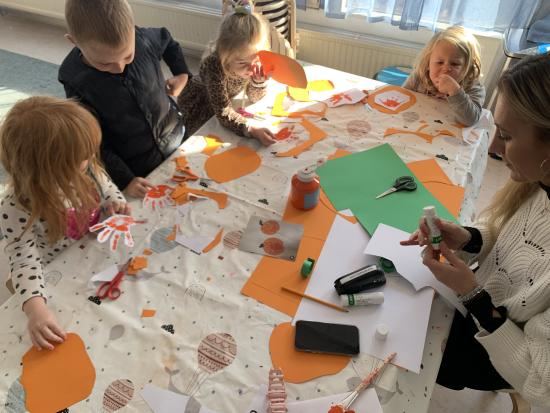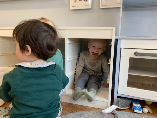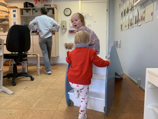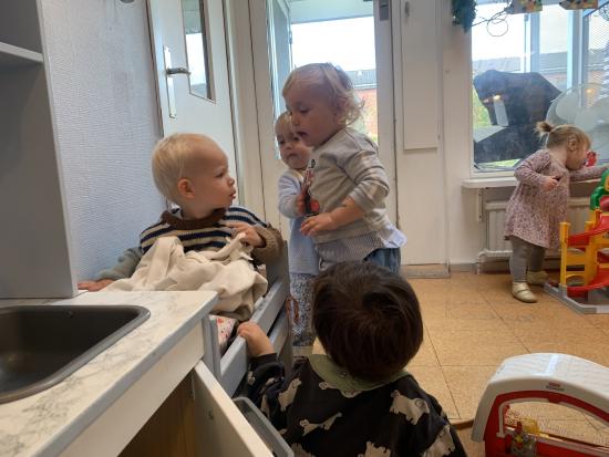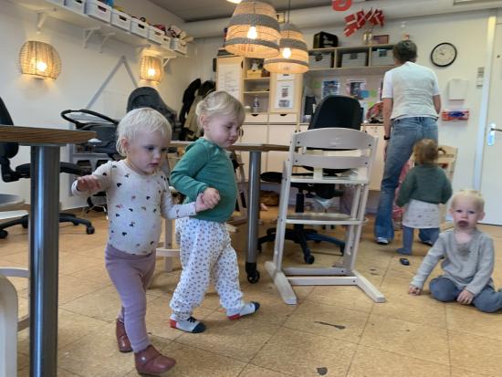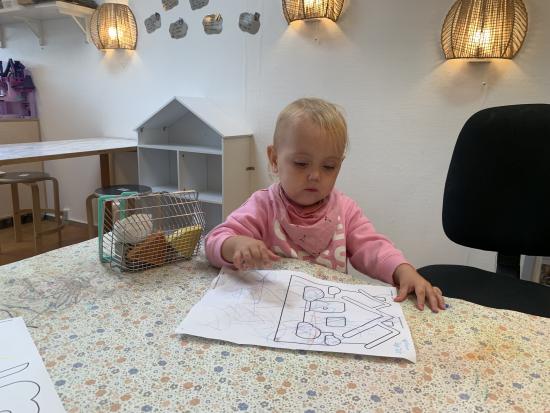 I fredags hørte var en gruppe børn i sproggruppe. Imens hørte de andre musik og dansede på stuen, legede og tegnede ved bordet. I går mandag, lavet billede lotteri med billeder af børnene selv, der blev leget, og særlig dukkesengen var der rift om :-) i dag tirsdag var en lille gruppe børn på tur, de var hjemme og se hvor Ebba bor, og imens blev der lavet mad i køkkenet på stuen, og leget med dyr.