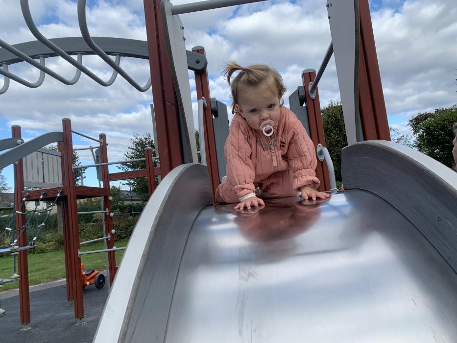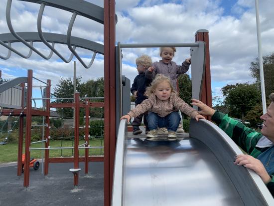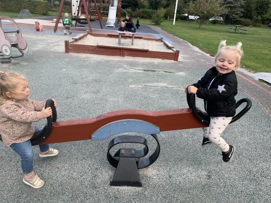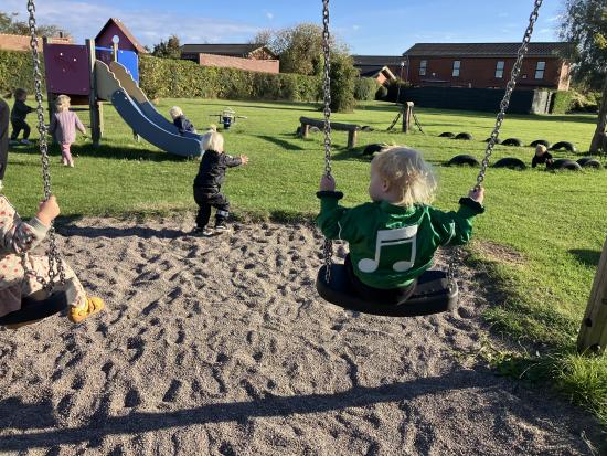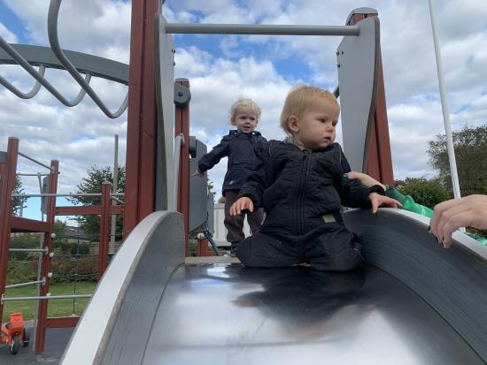 I dag tog vi alle sammen på tur til engparkens legeplads. Vi fik rutsjet, gynget, vippet, løbet og leget i sandkassen. Da vi kom hjem fik vi dejlig asparges suppe.