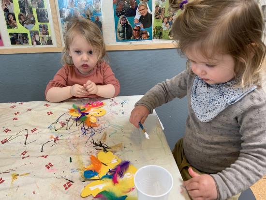 I dag var alle, store og små en tur på legepladsen og lege i det flotte vejr. Der blev gynget, hvor nogle skubbede hinanden på gyngen. Der blev leget i sandkassen og den store rutsjebane var et særligt stort hit i dag for alle. Husk navn i børnenes nye fine overtøj, det er svært for os at gætte hvem der ejer hvad, når vi tager alt overtøjet ind på stuen. Overtøj og fodtøj står i 2 spande på bænken i garderoben, så der kan i findes jeres barns overtøj når i henter i dag.