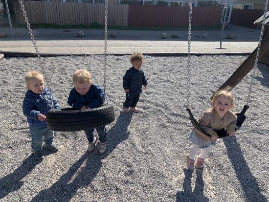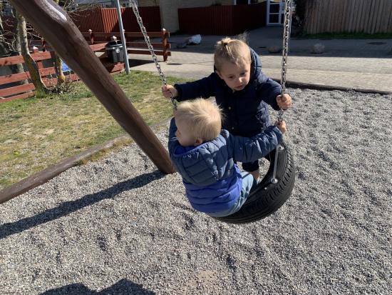 Så har vi sidste dag i Rødtjørnen. Vi har været på legepladsen i det dejlige vejr, hvor vi har kørt på motorcykler, været i sandkassen og gynget. I børnehaven var der høj musik, som vi også havde glæde af i vuggestuen. Husk at tá alle jeres børns ting med hjem i dag.