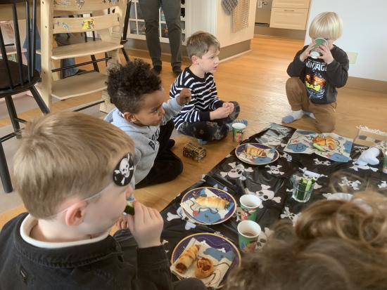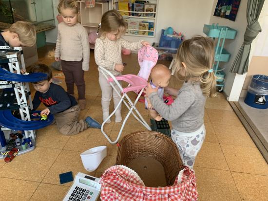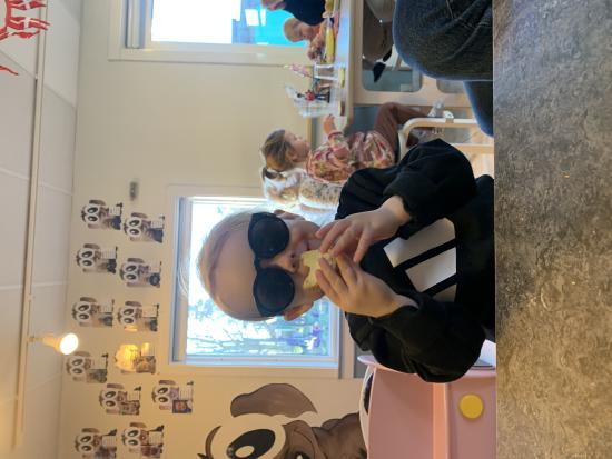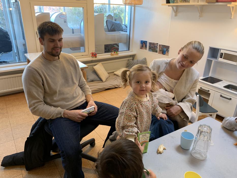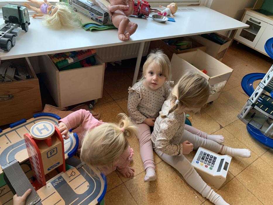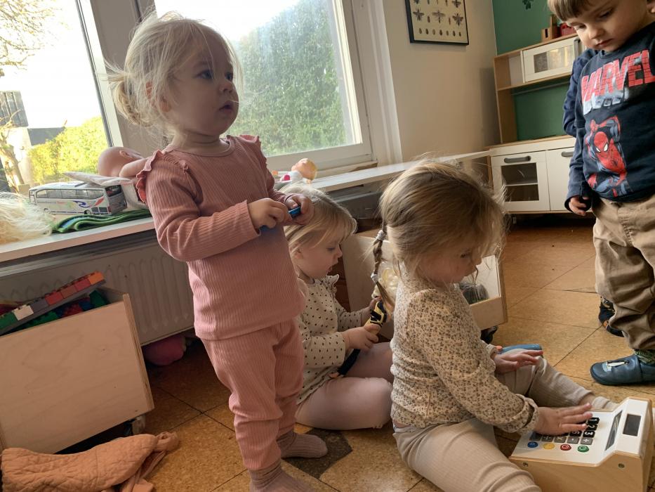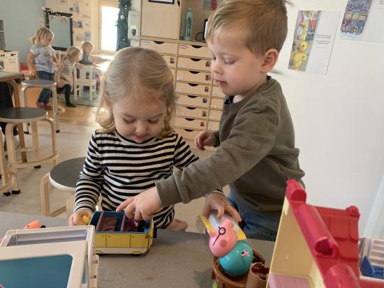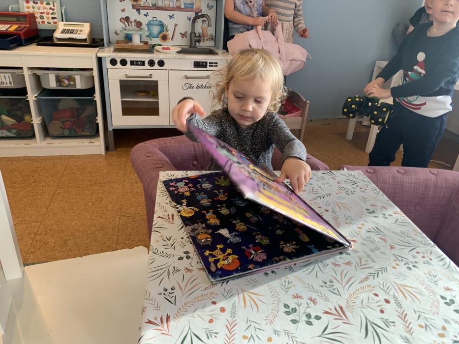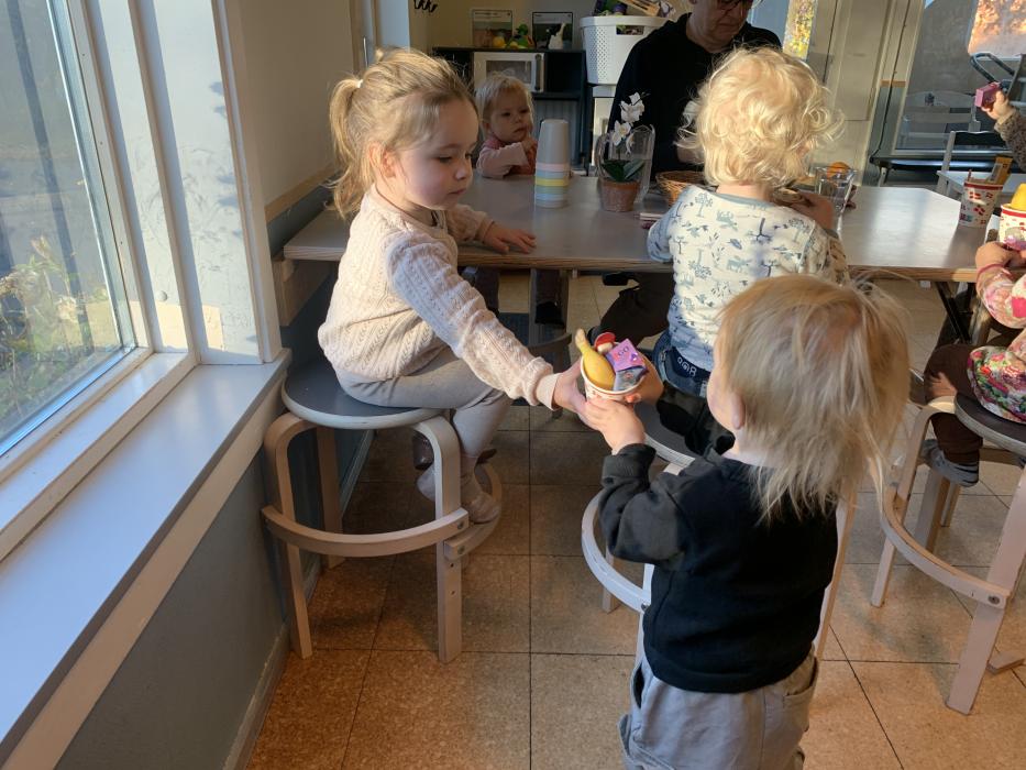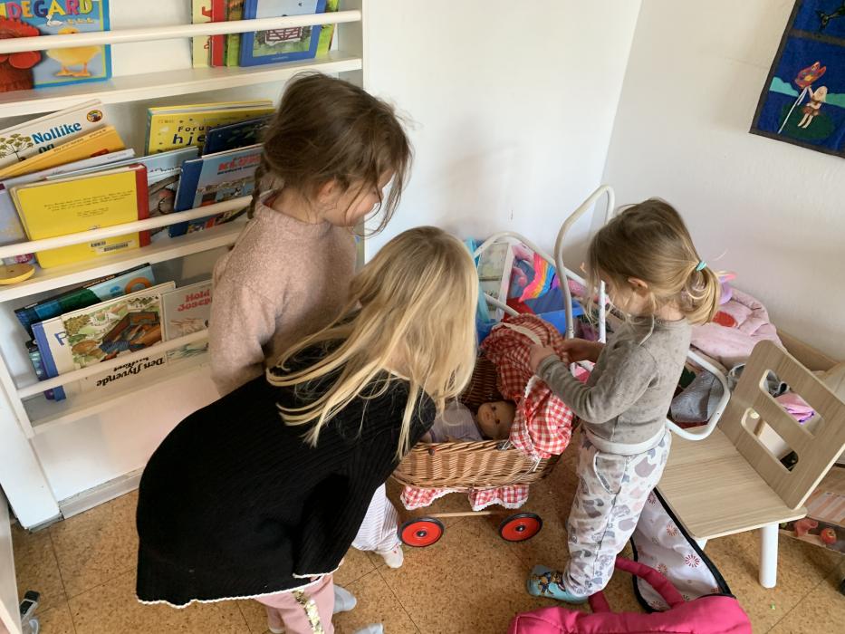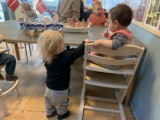 I dag har vi været på tur. Vi gik over forbi den lille legeplads. Vi øvede i at holde hinanden i hånden og på at holde fast ved barnevognen. Nøj hvor var de små tudser gode til det! På vejen hjem til vuggestuen fandt Villum en forsvarspind ligesom Ib fra vores historie!