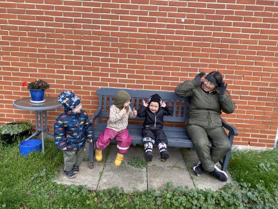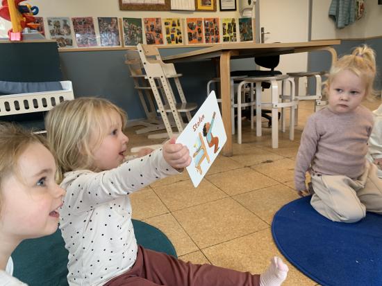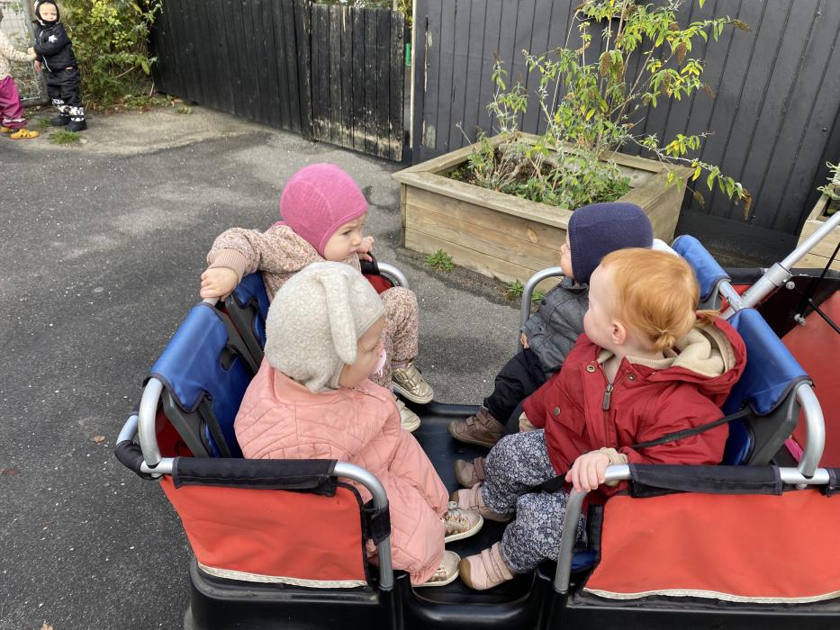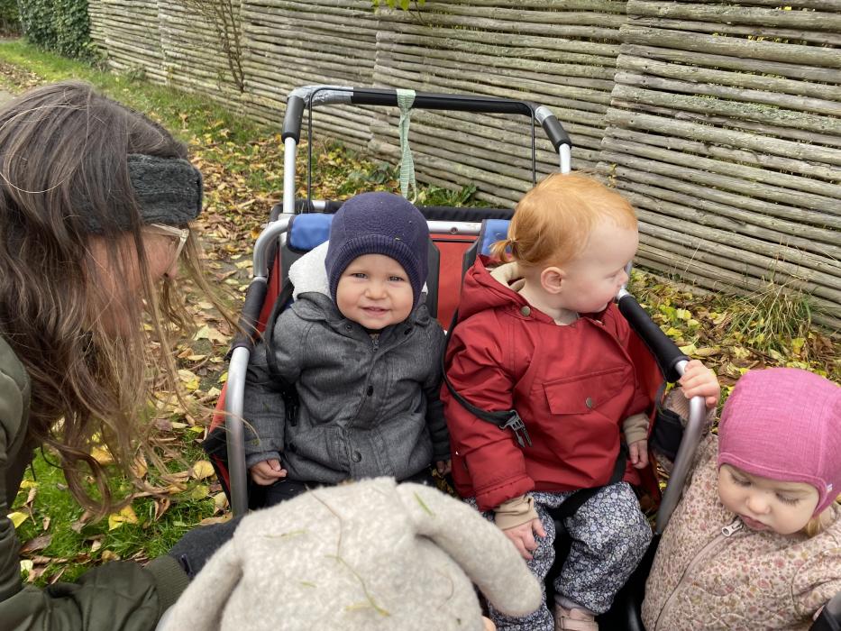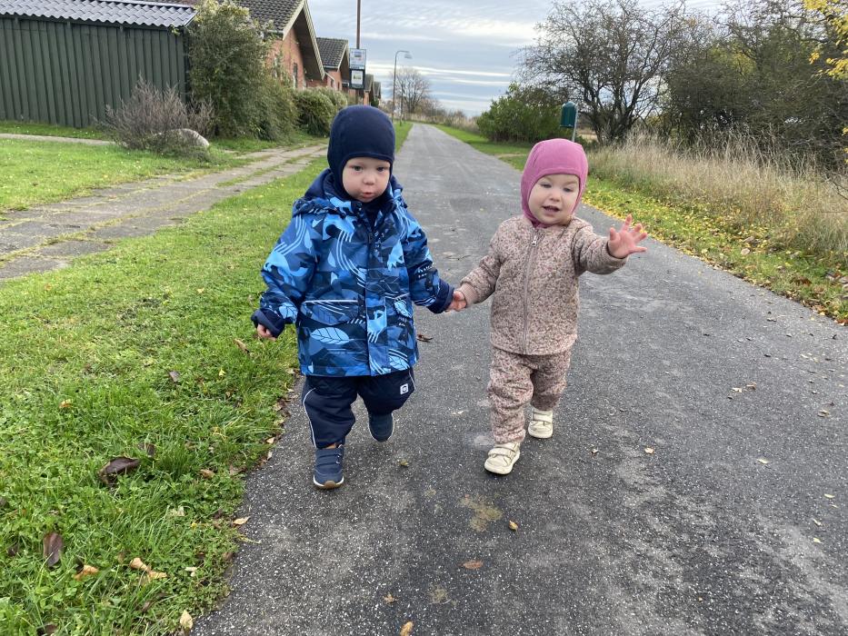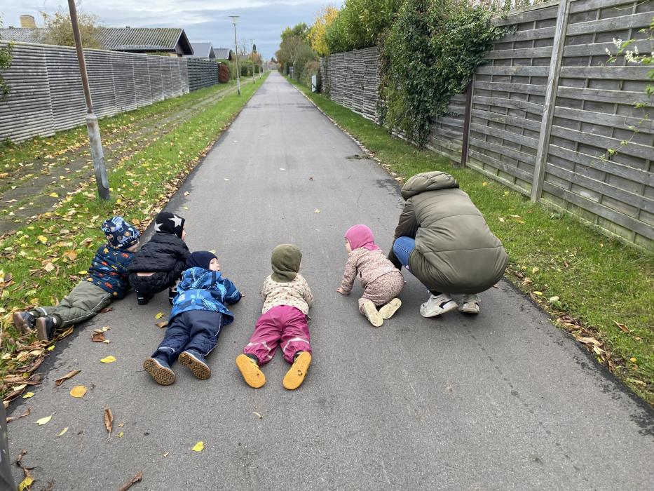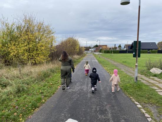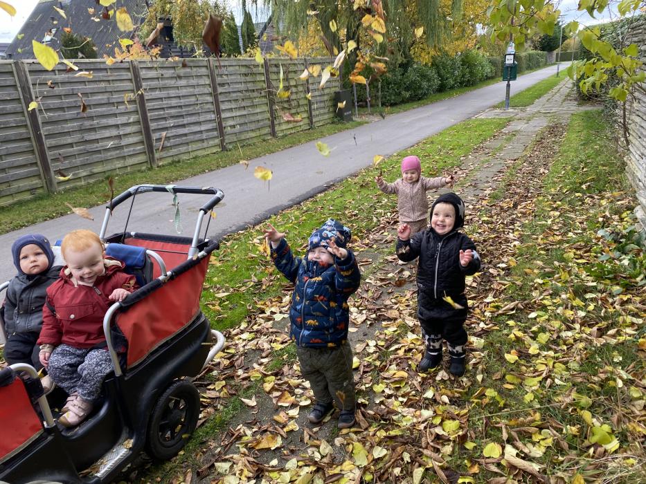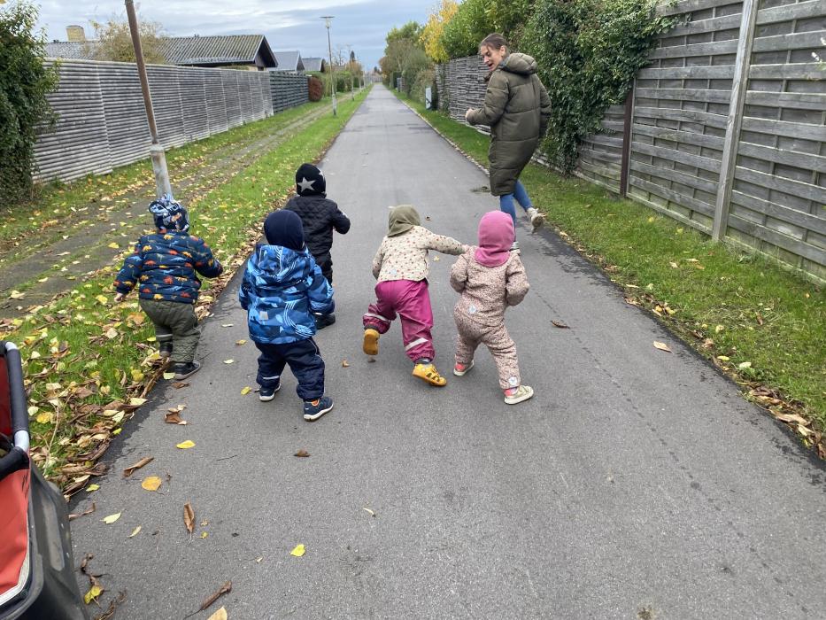 Alba, Mira, Storm, Topper, Marie, Asta, Nora og Carla har været ude og gå en tur. Vi løb kapløb, og mødte hunde. Vi legede også med blade som vi kastede op i luften, det var rigtig sjovt.